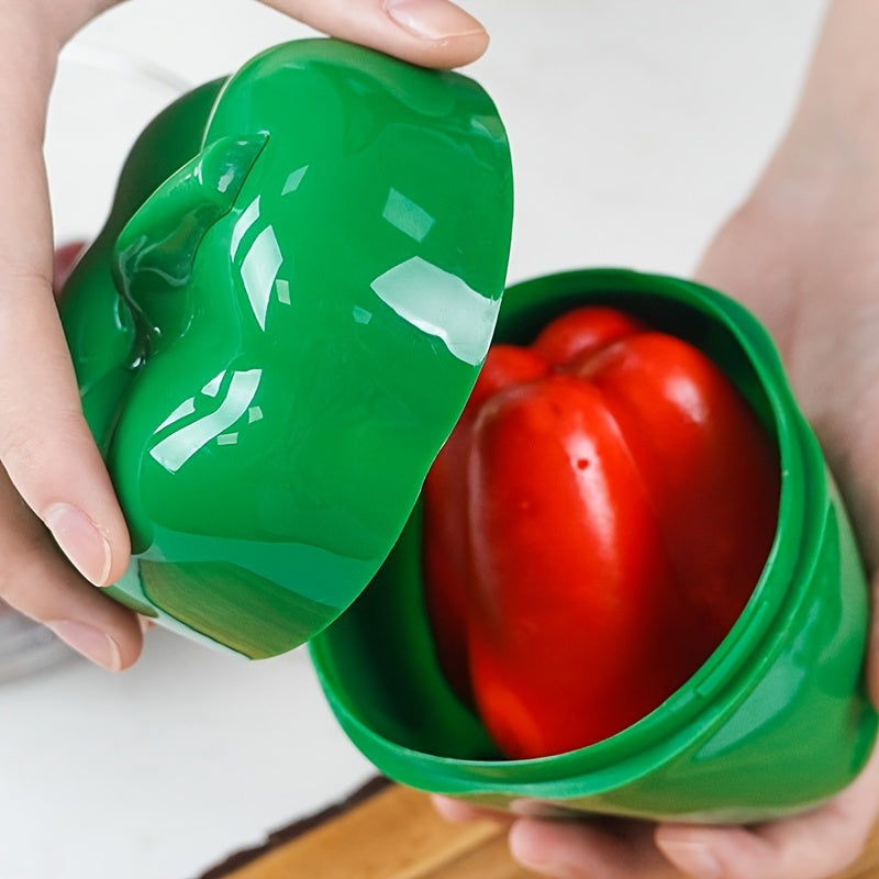 Green Pepper-Shaped Food Storage Container with Flip-Top Lid for Vegetables and Kitchen Organization
