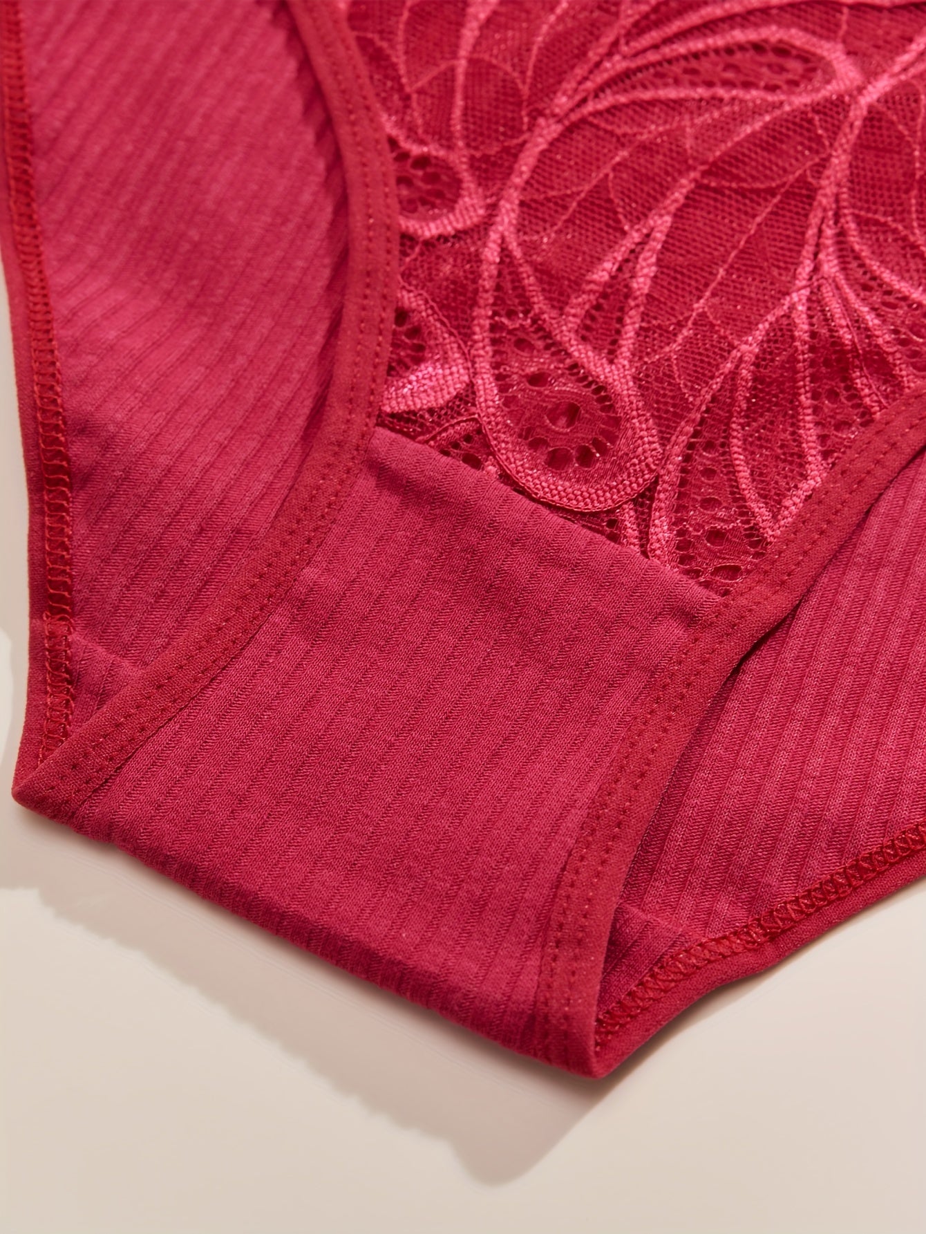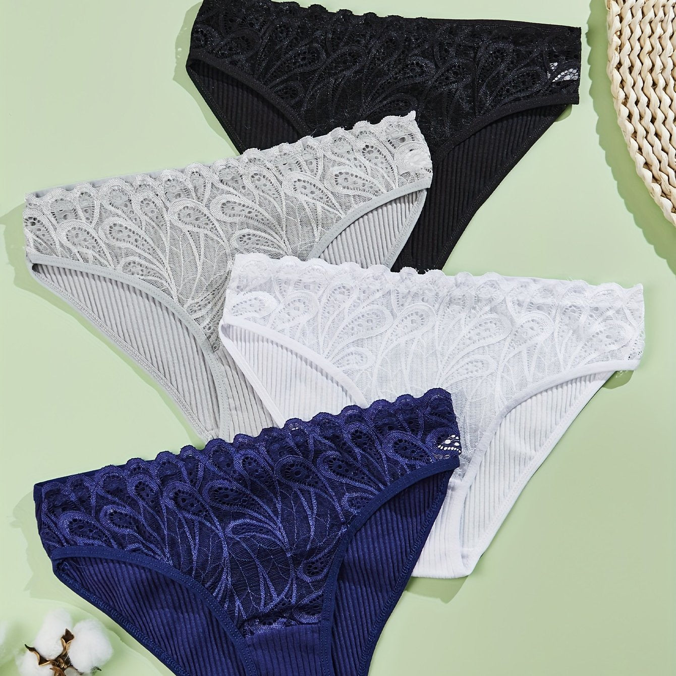 Women’s Cotton Briefs Set 4 Pieces Mid Rise Lace Solid Comfortable Stretchy