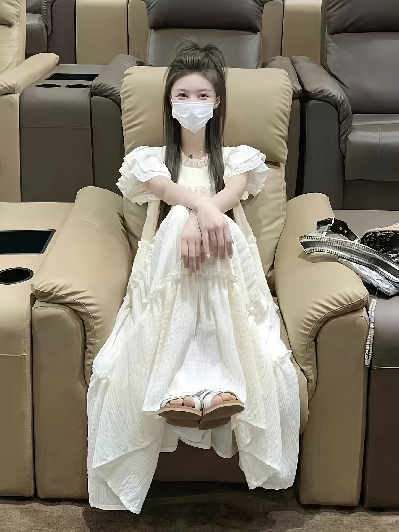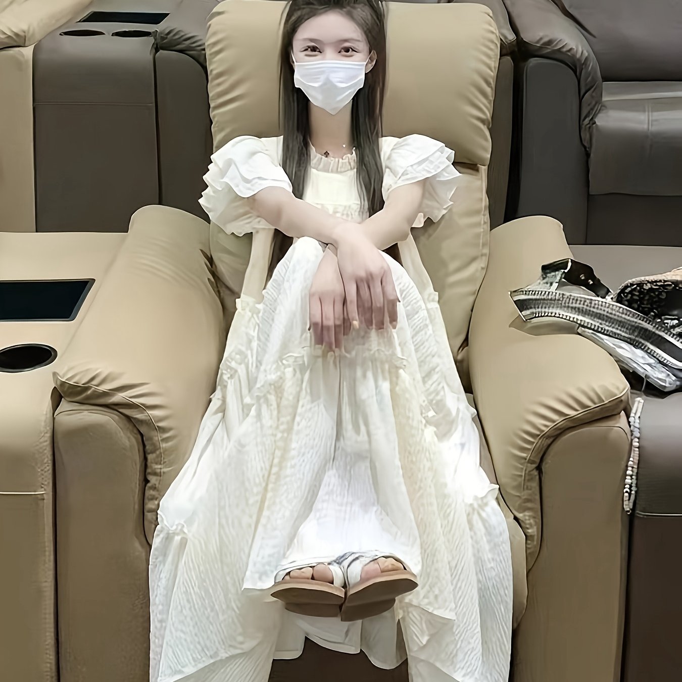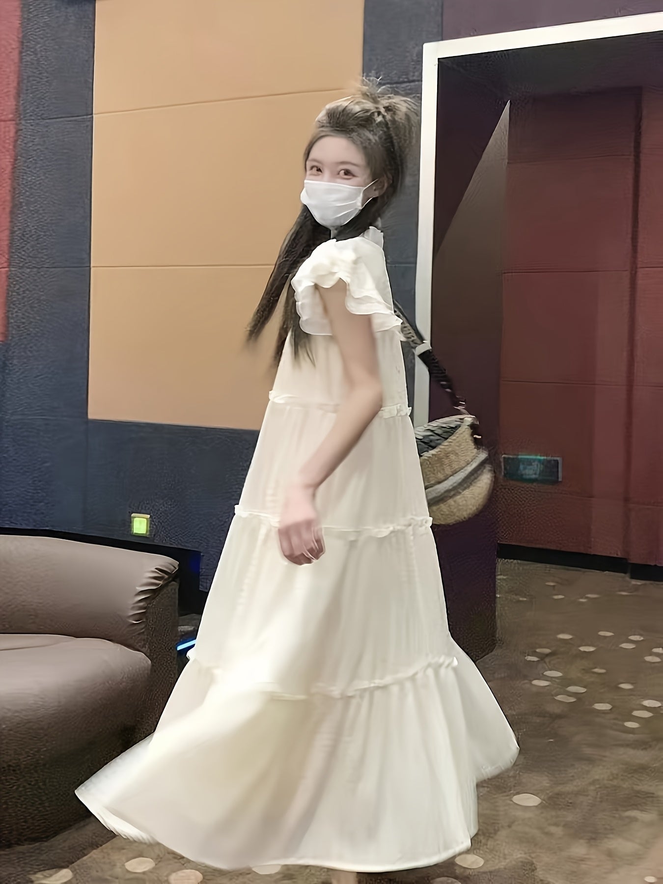 Women's Maxi Dress Summer 2025 French Style Loose Fit Bubble Skirt Flutter Sleeves Polyester
