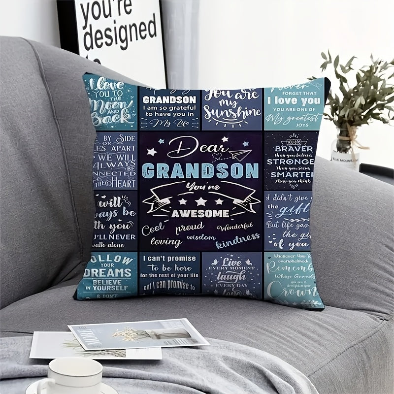 French Style Grandson Themed Pillow Cover 44.96cm Plush Polyester Zippered Cushion