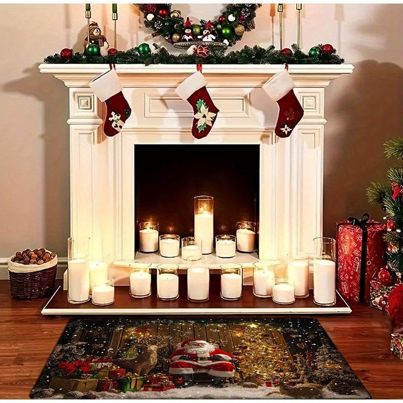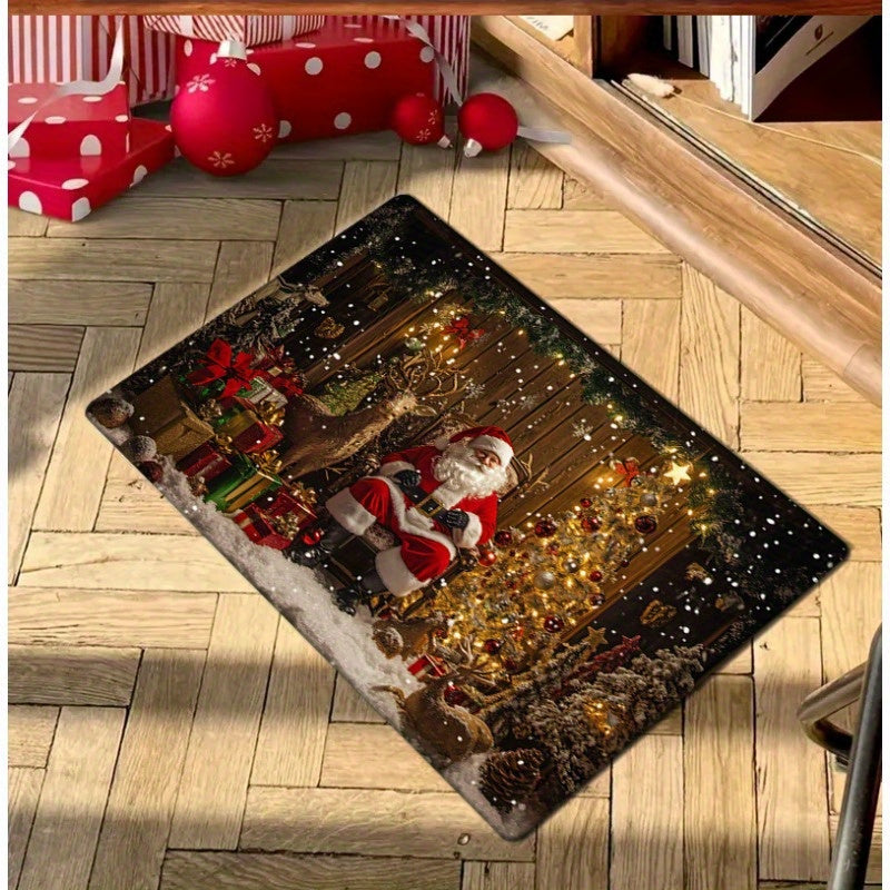 Festive Christmas Door Mat Non-Slip Washable Polyester Rectangular Rug