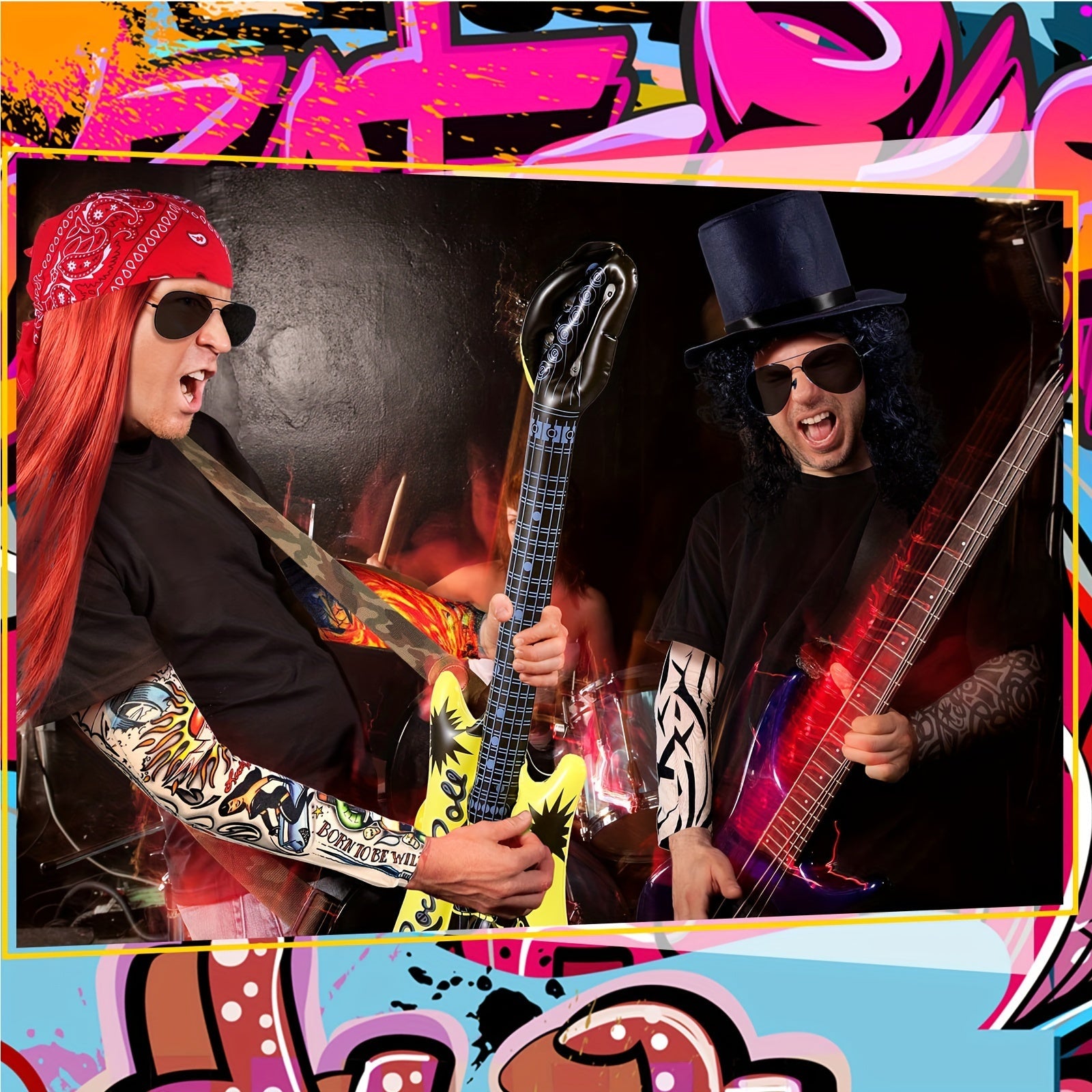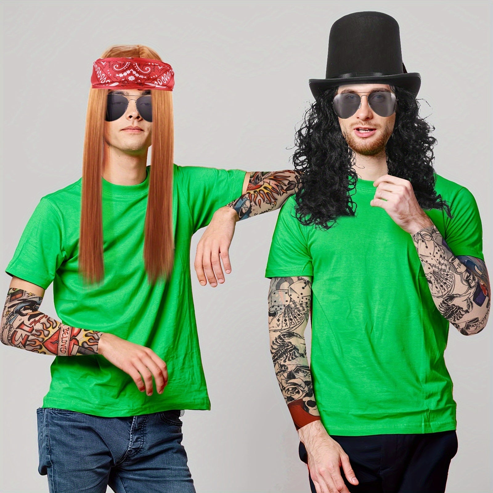Retro Rocker Costume Set 7-Piece 70s/80s Heavy Metal Hippie Accessories