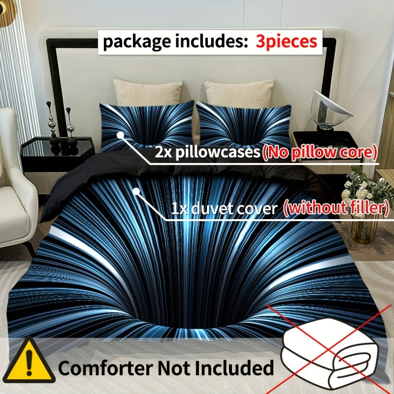 3D Vortex Quilt Cover Set 3 Pieces Digital Print Polyester Bedding Set