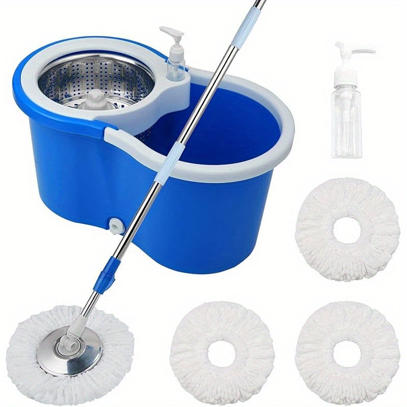 360° Rotating Mop and Bucket Set with Microfiber Heads and Adjustable Handle