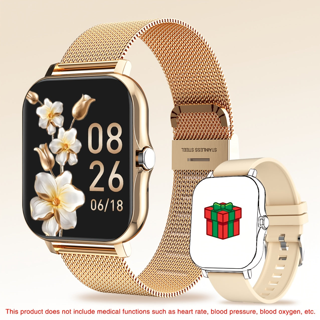Smart Watch with Touch Screen Call Function Fitness Tracker Zinc Alloy Case Silicone Band