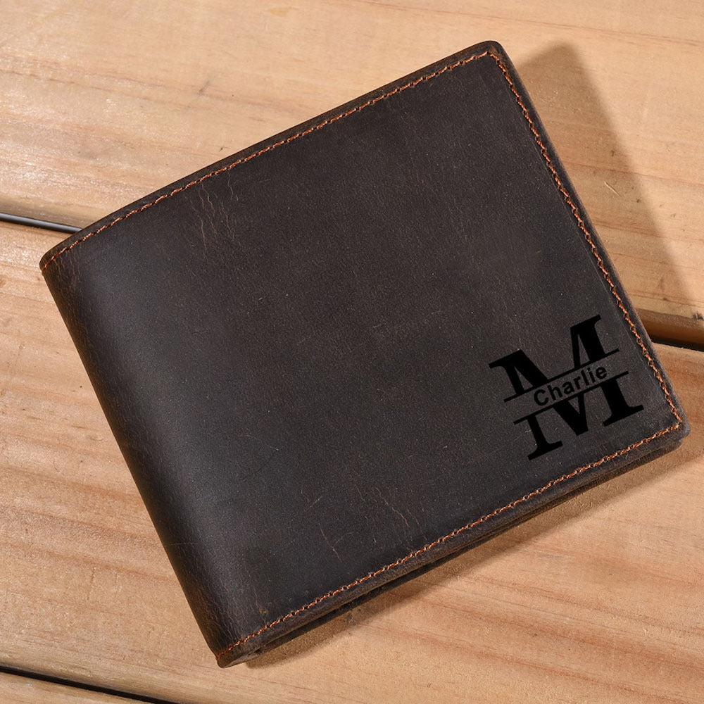 Men's Black Faux Leather Wallet Personalized Engraved Gift for Him