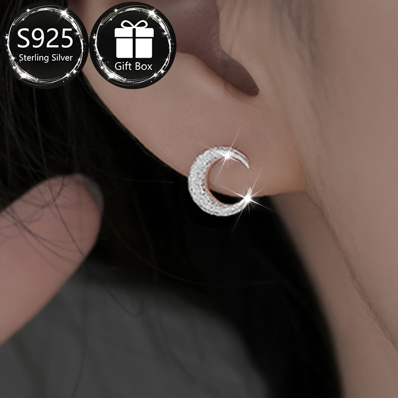 Sterling Silver Star and Crescent Moon Earrings for Women with Frosted Texture