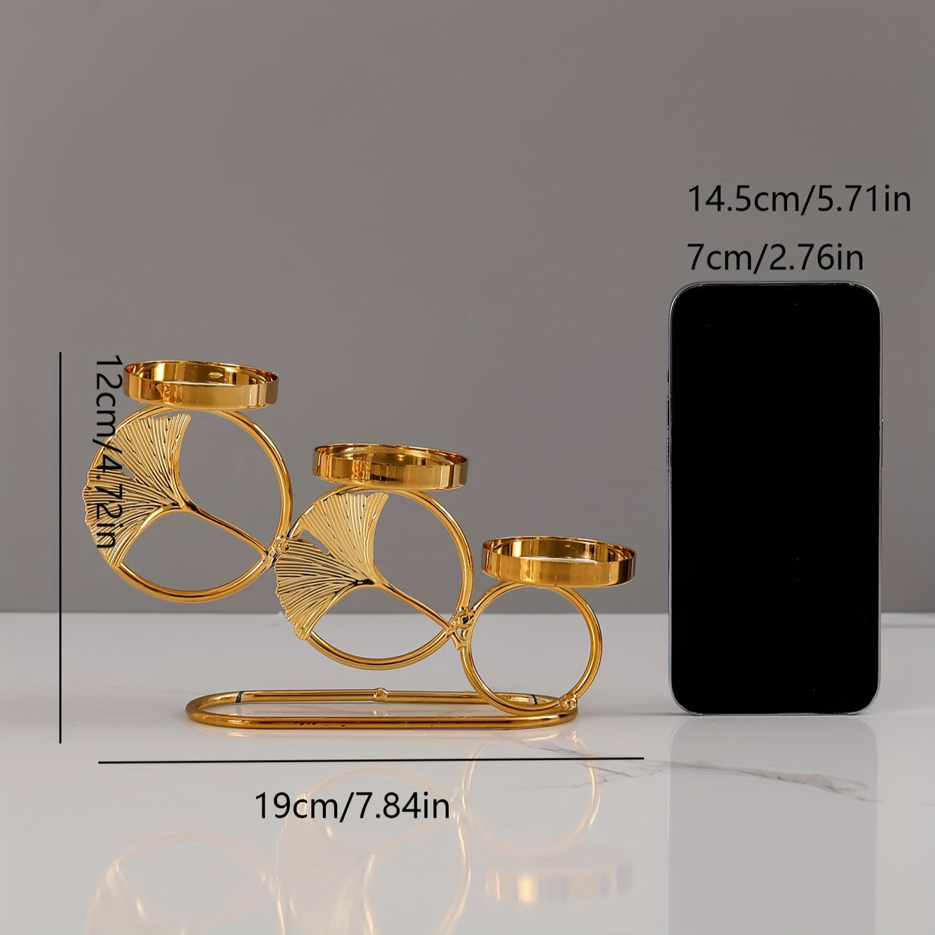 Ginkgo Leaf Candle Holder with Three Gold Cups for Romantic Decor and Weddings
