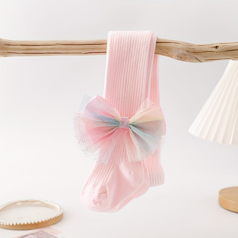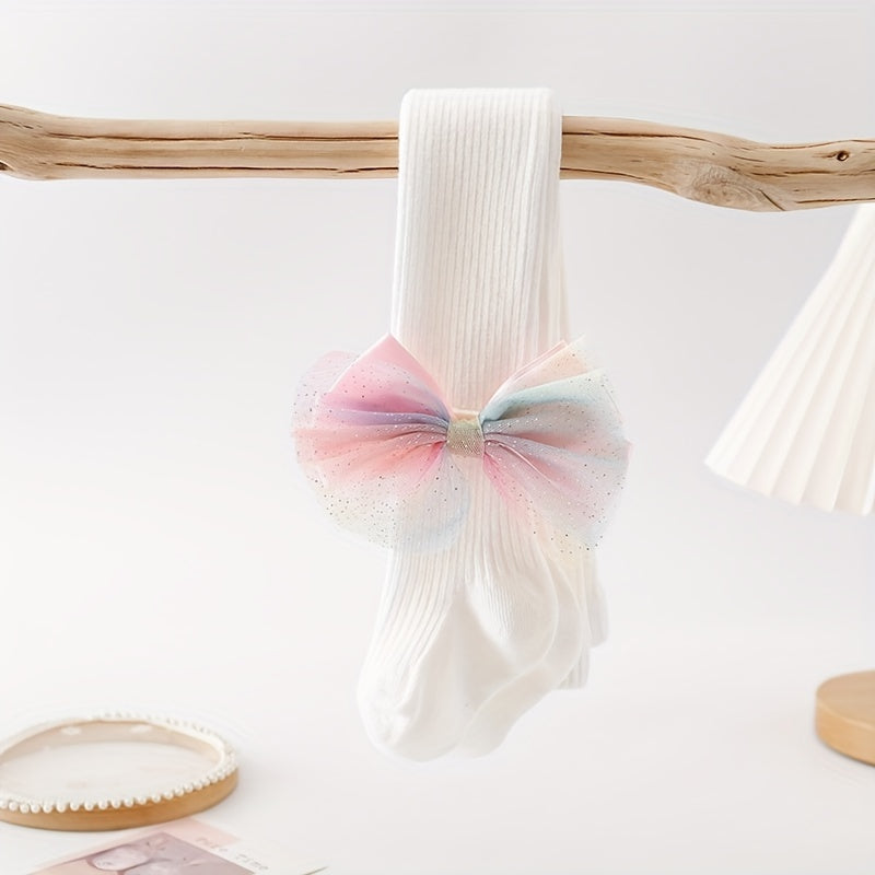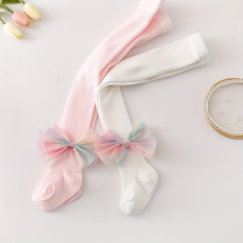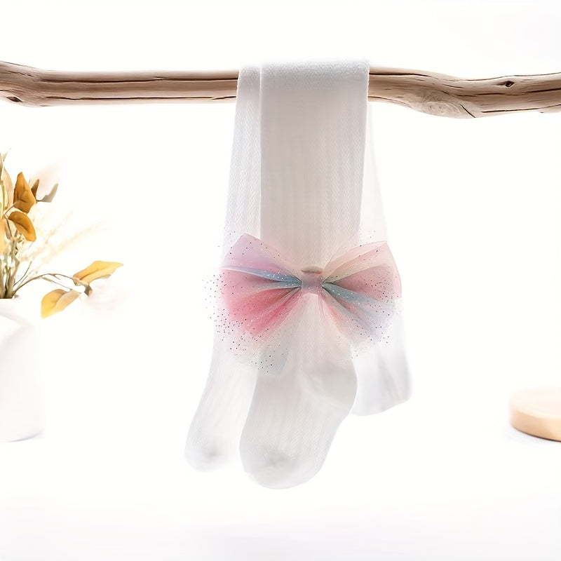 Girls Floret Patterned Pantyhose with Bow Tie Solid Knit Base Layer for Toddlers in Spring and Autumn