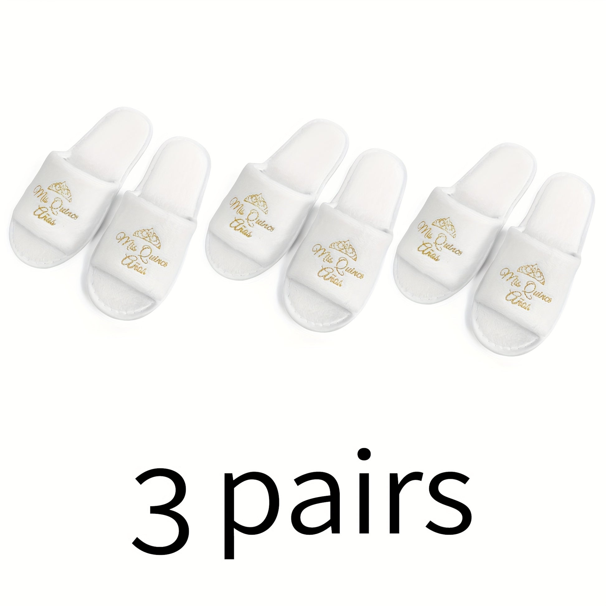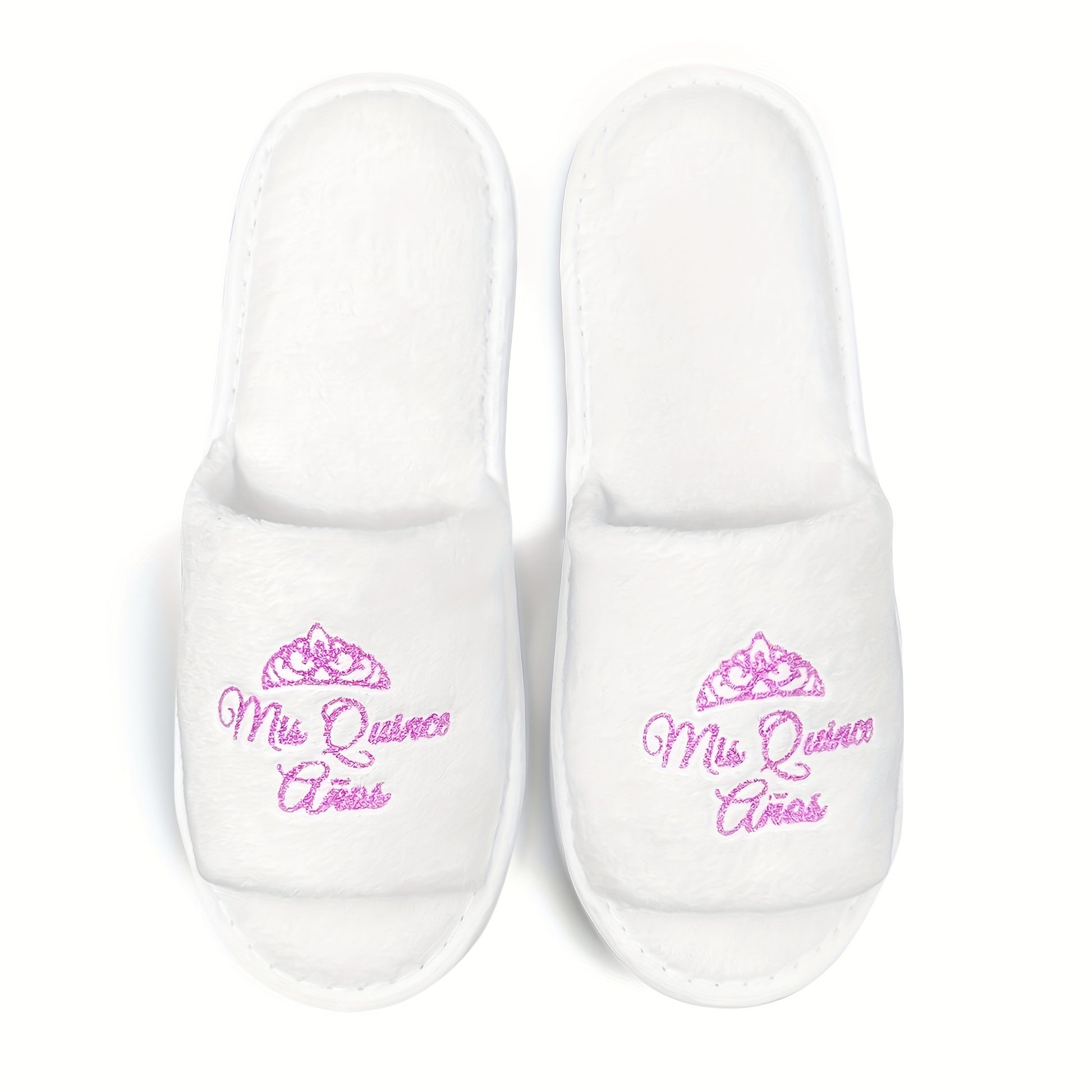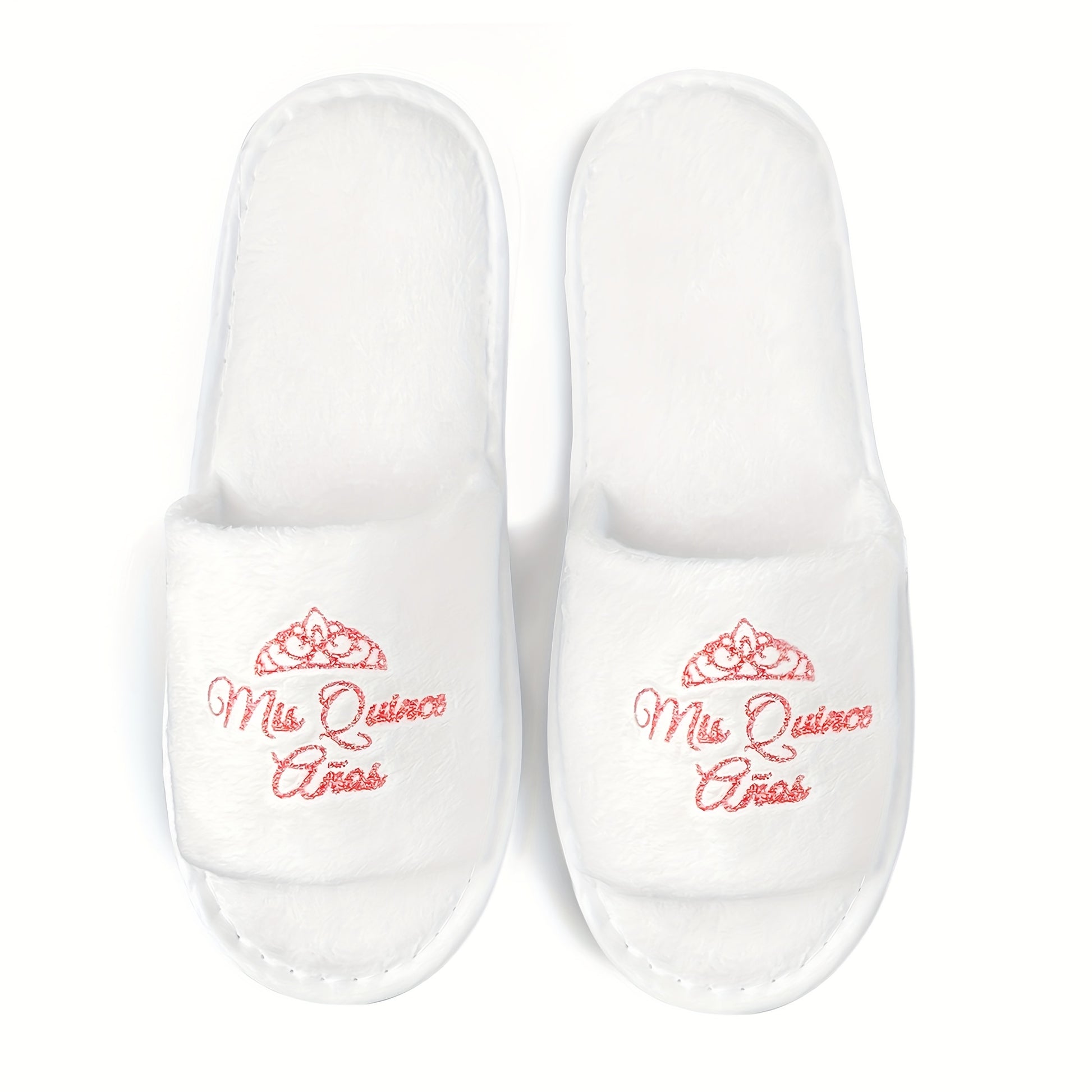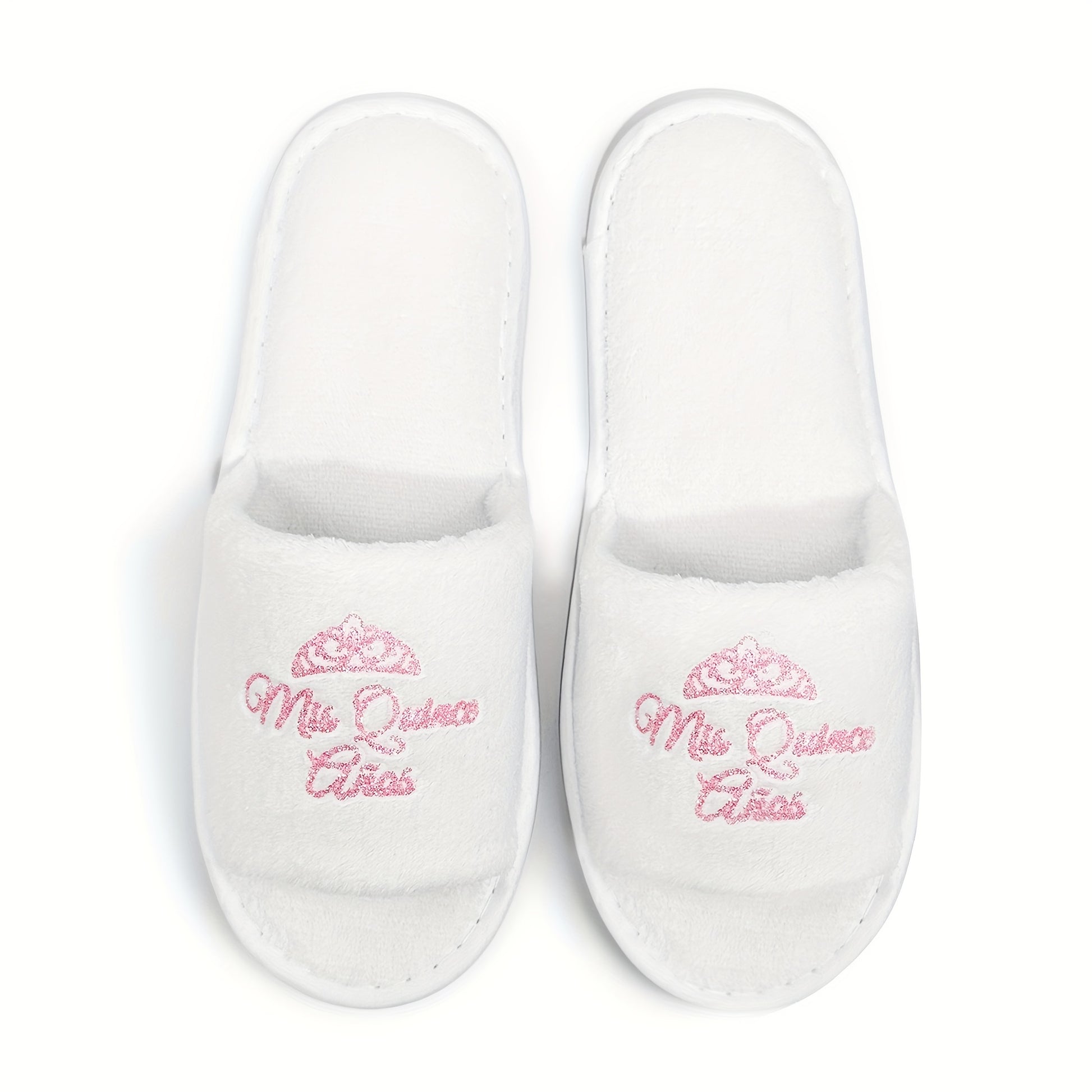 Girls 15th Birthday Glitter Gold Crown Script Slippers Soft EVA Flats
