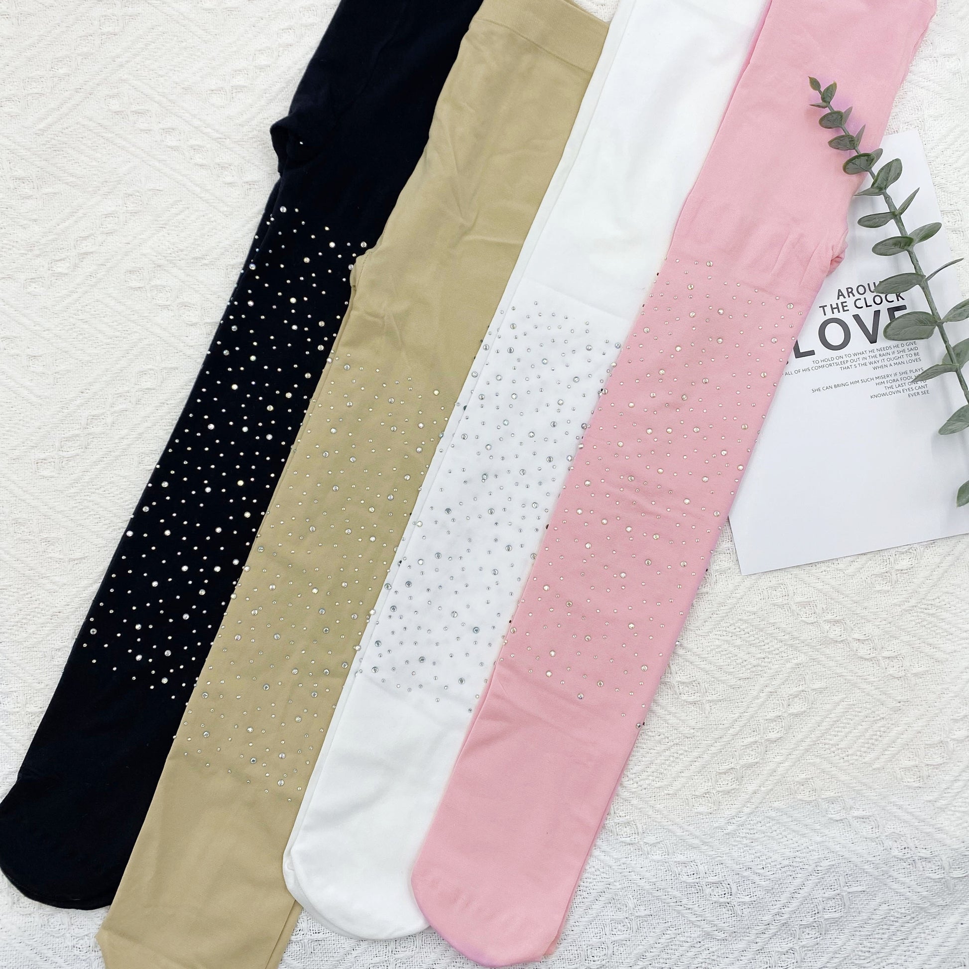 Girls Diamond Decorated Tights for Dancing Spring Summer Knit Polyamide Spandex
