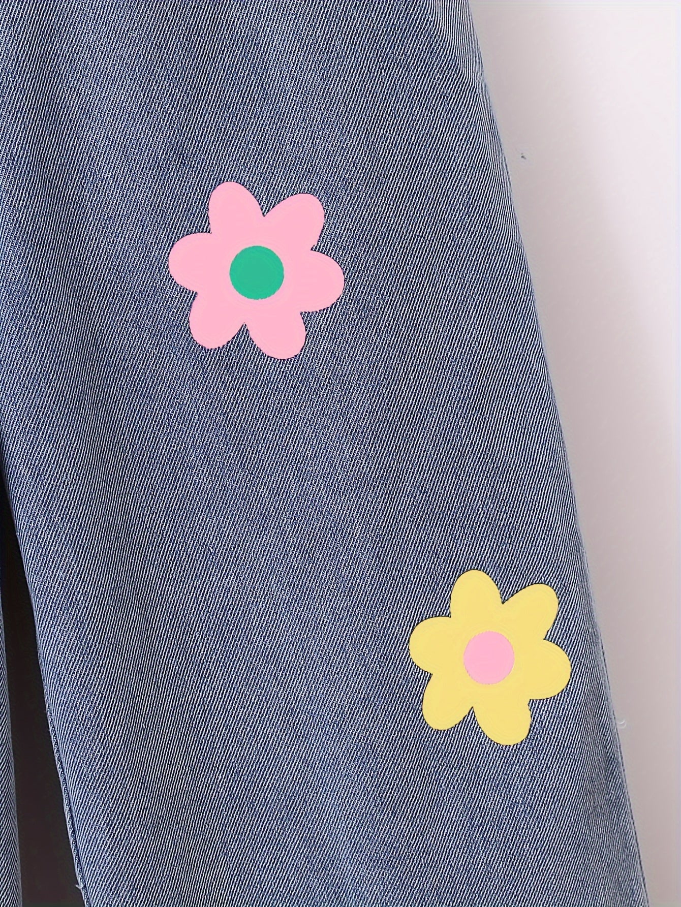 Girls' Floral Wide Leg Denim Jeans with Elastic Waist for Girls Over 3 Years Old