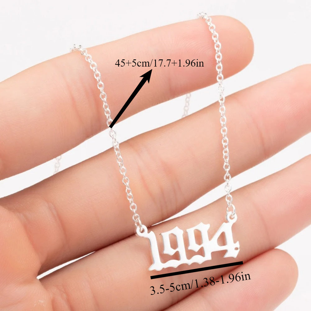 Personalized Stainless Steel Number Necklace with Birth Year Pendant for Women and Girls
