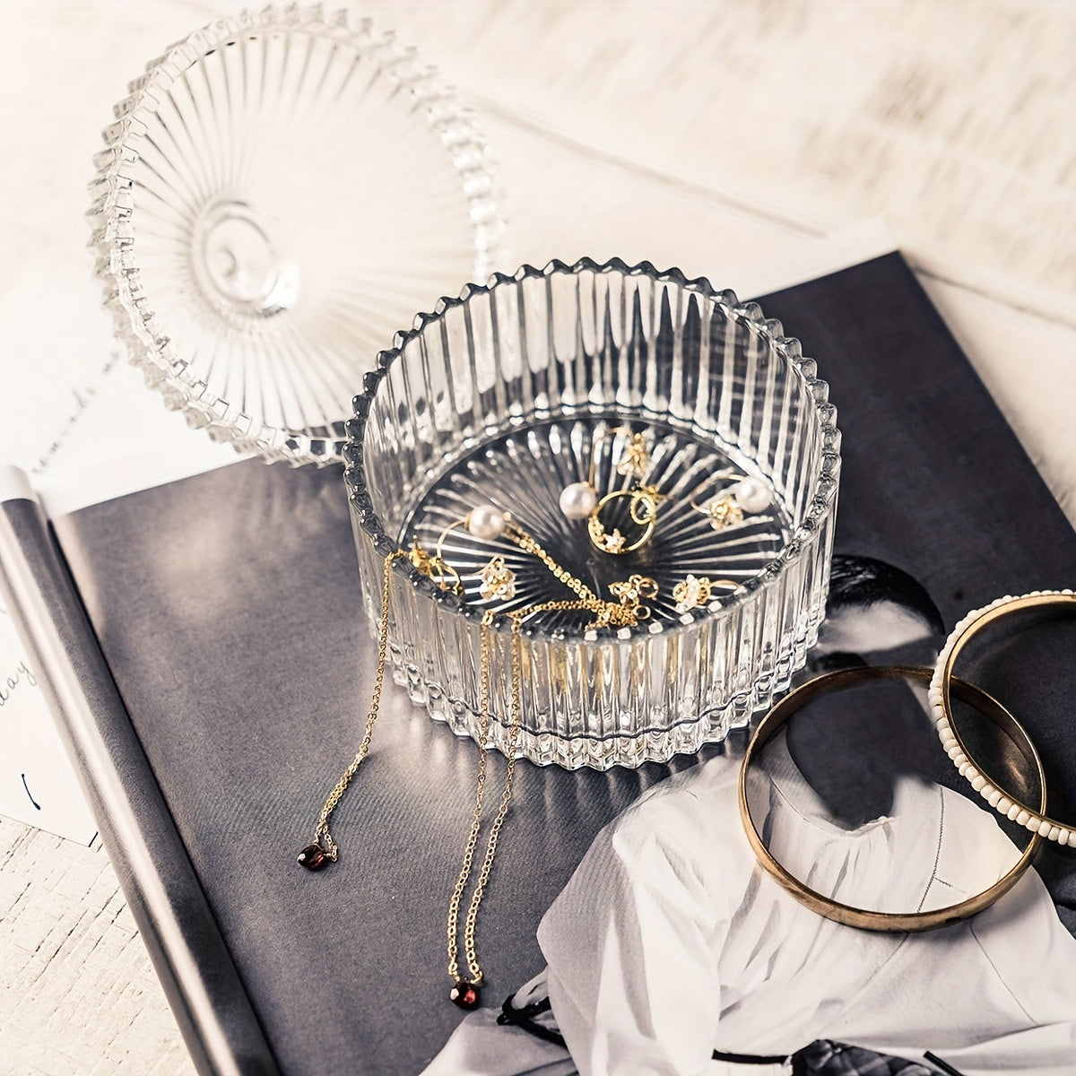 Decorative Glass Candy Server with Lid Jewelry Holder Candle Stand Tabletop Decor