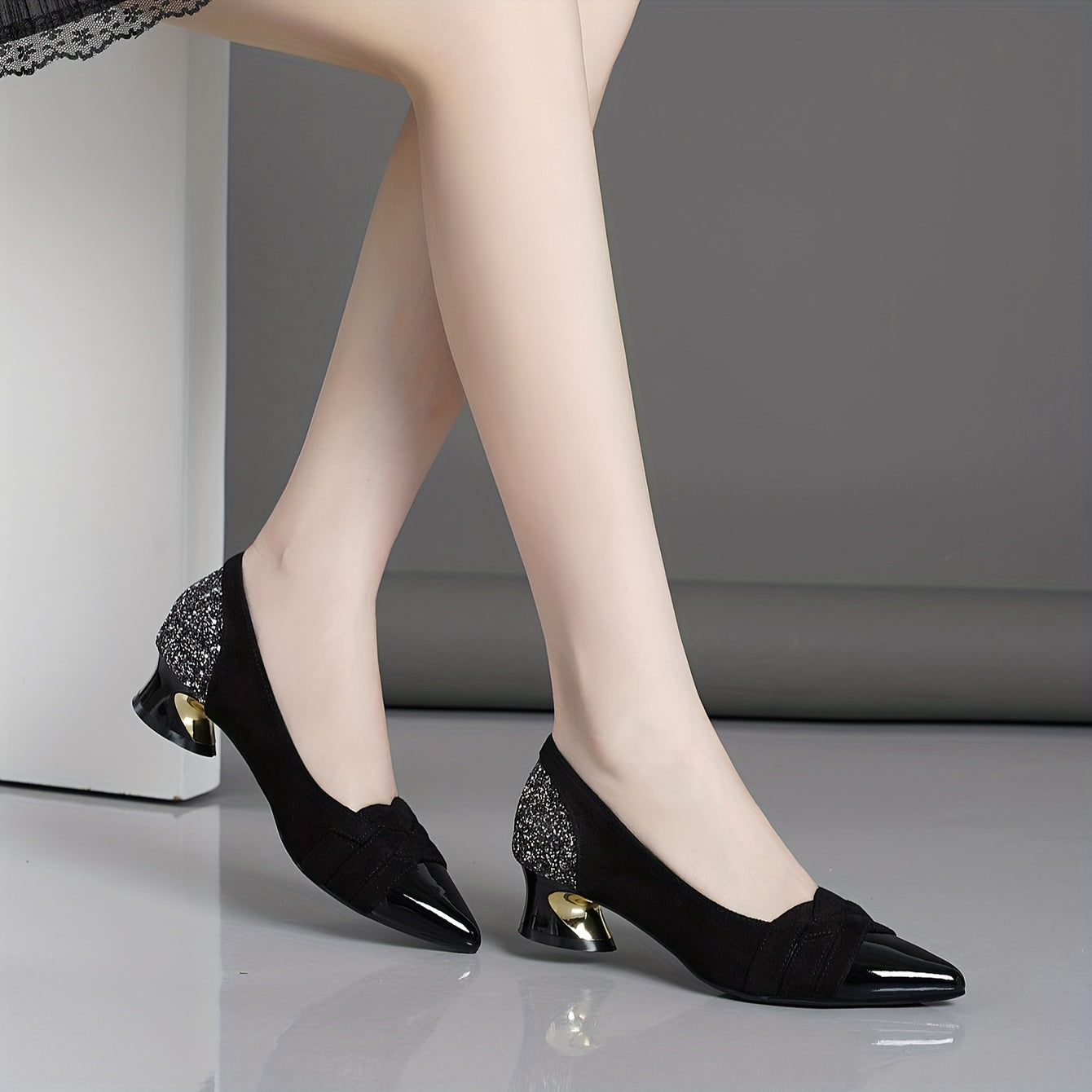 Women's Glitter Chunky Heels Pointed Toe Block Heel for Carnival and Music Festivals