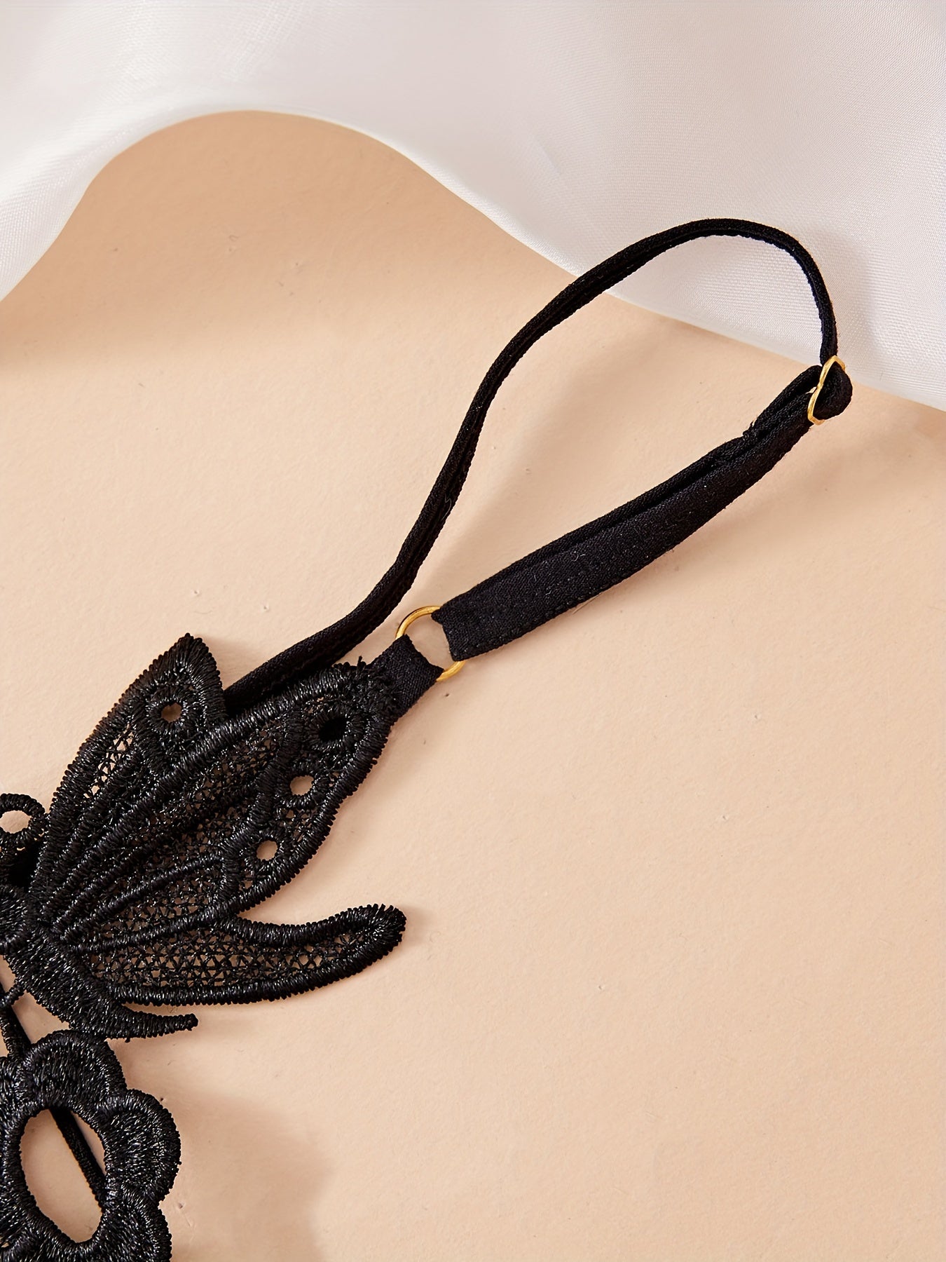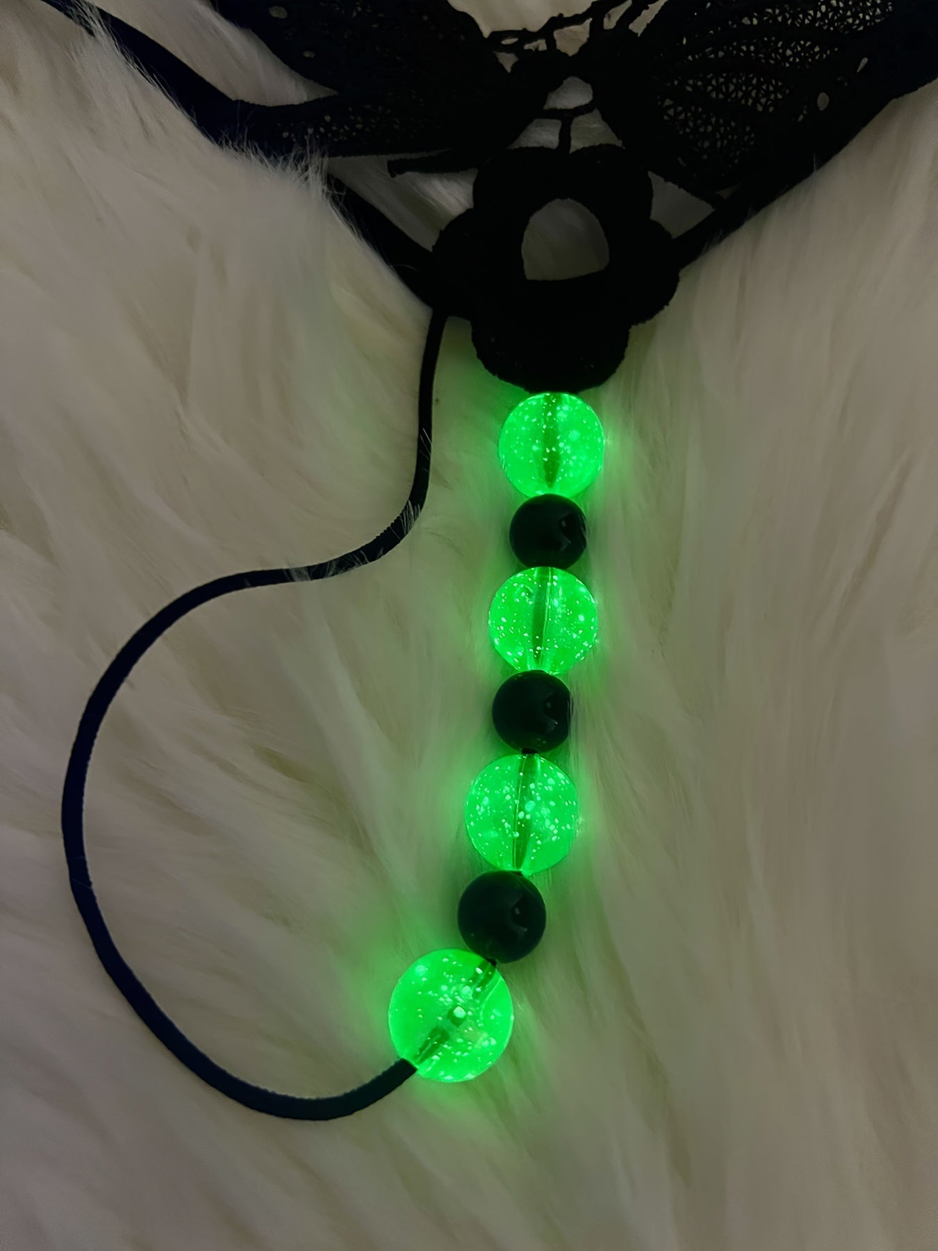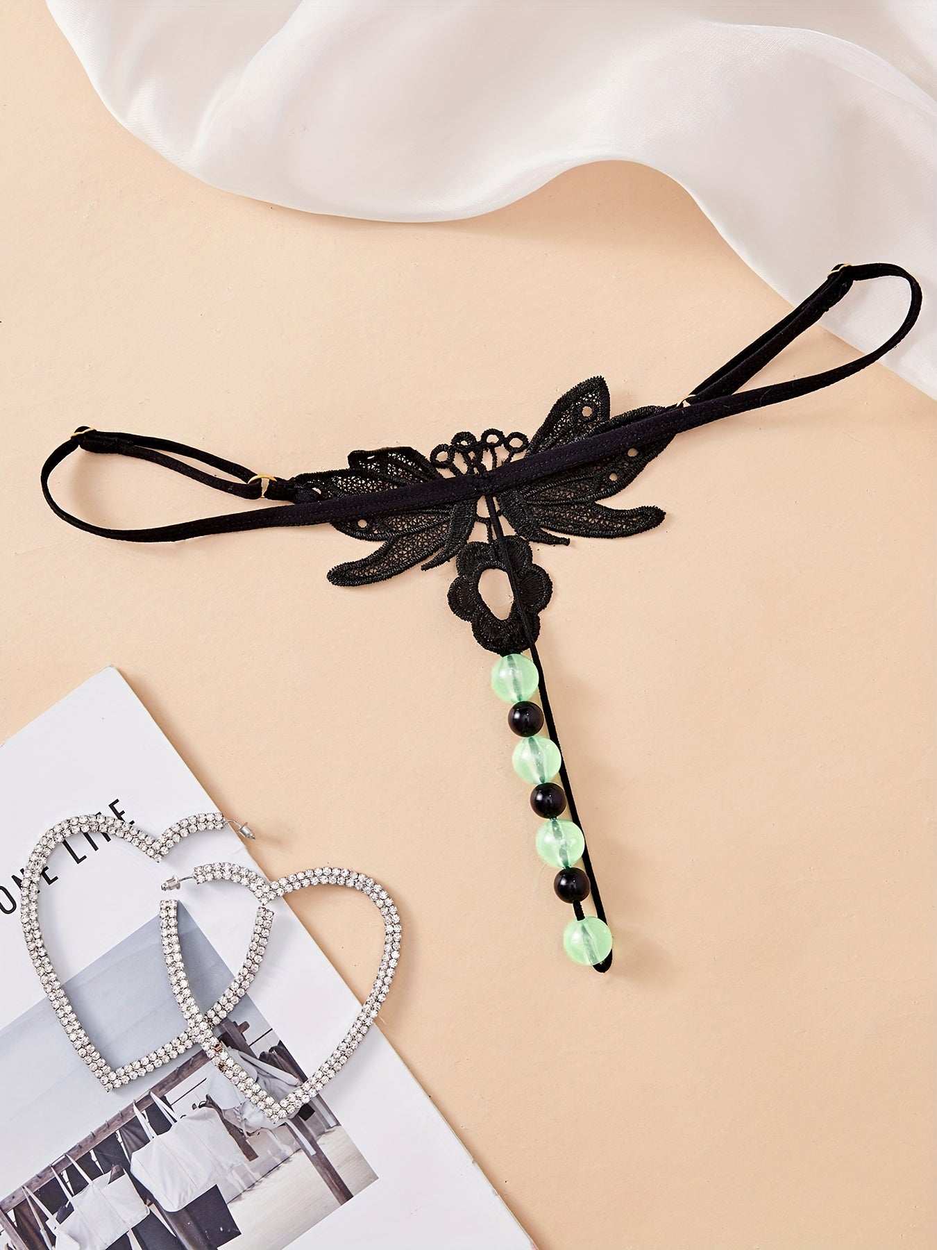 Black Lace Thong for Women with Drop Waist and Massage Beads Elegant Lingerie