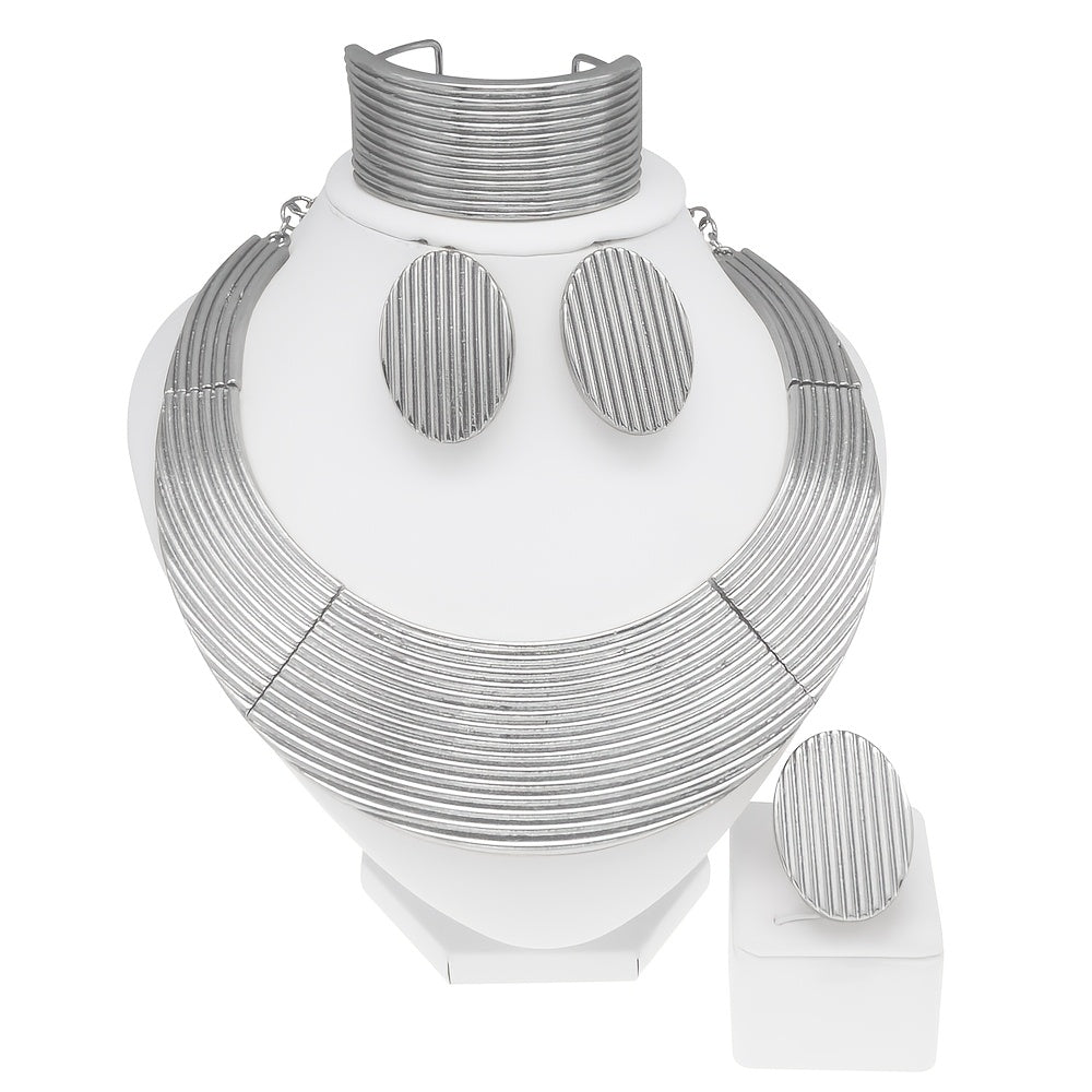 Women's Gold Plated Jewelry Set with Large Round Necklace Minimalist Elegant Gift