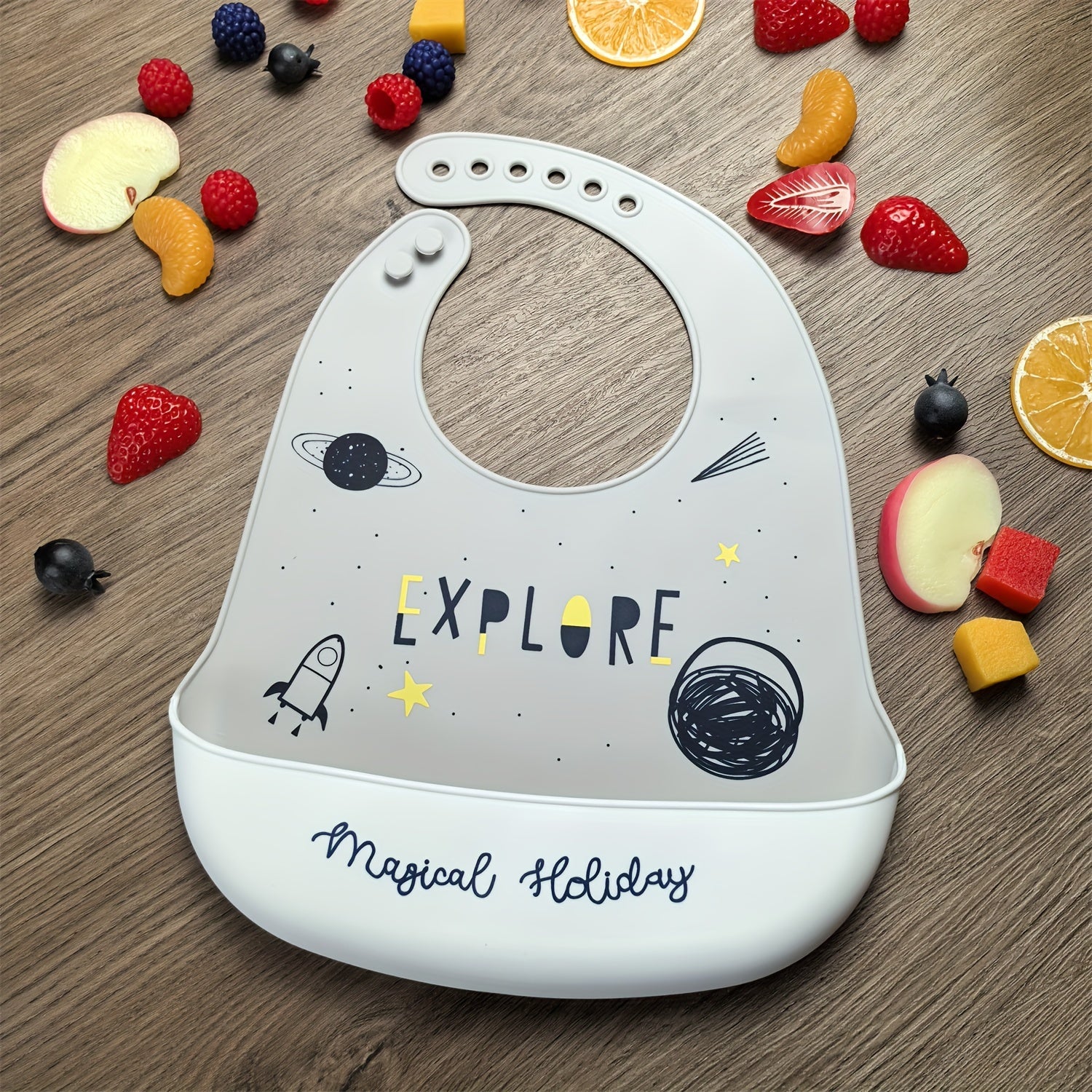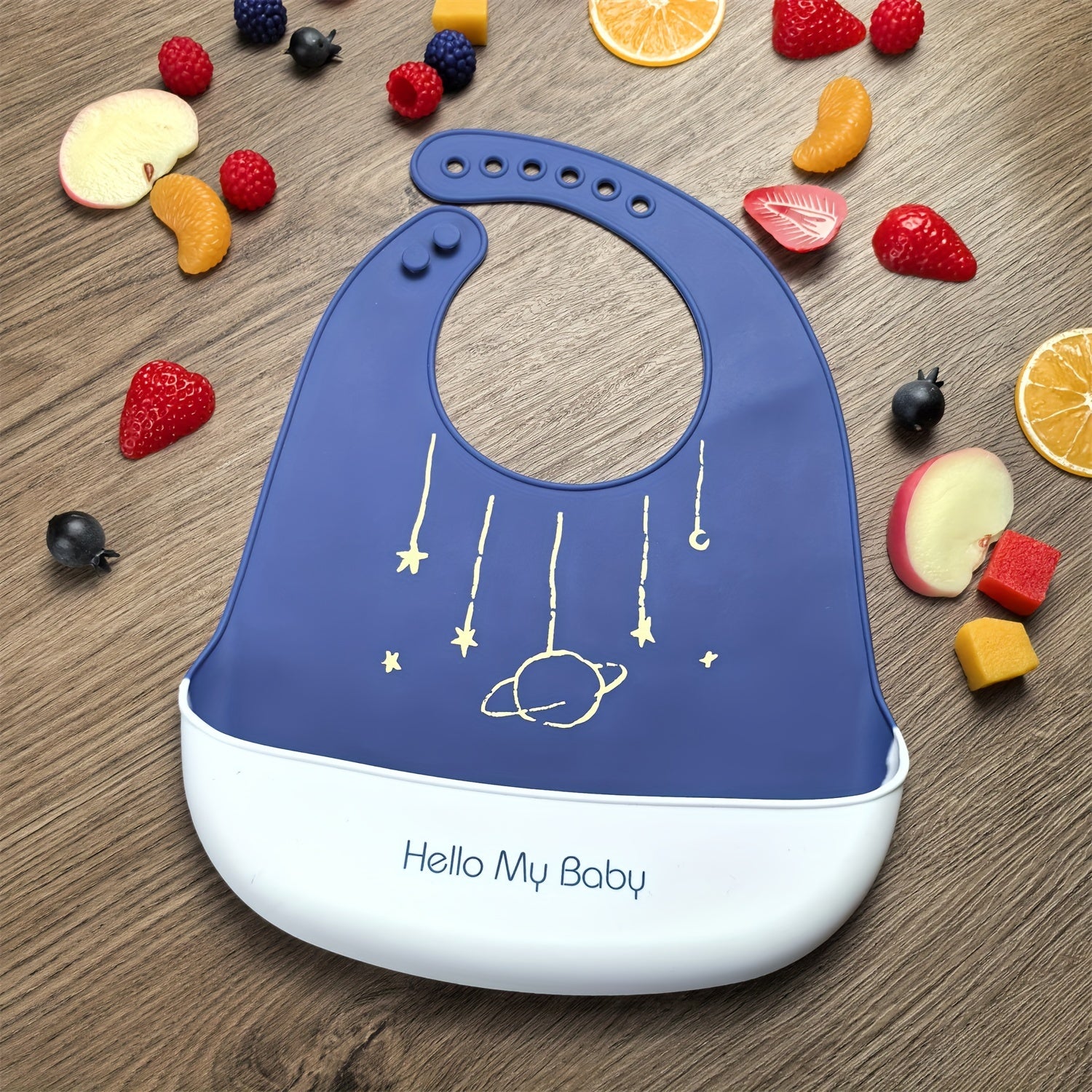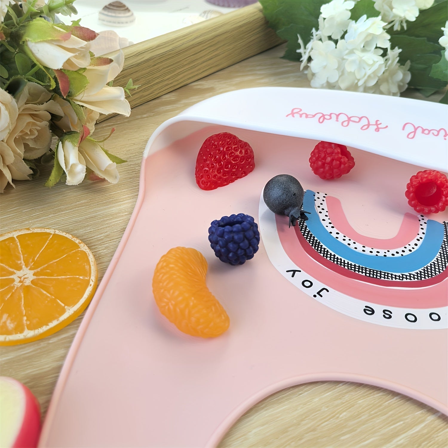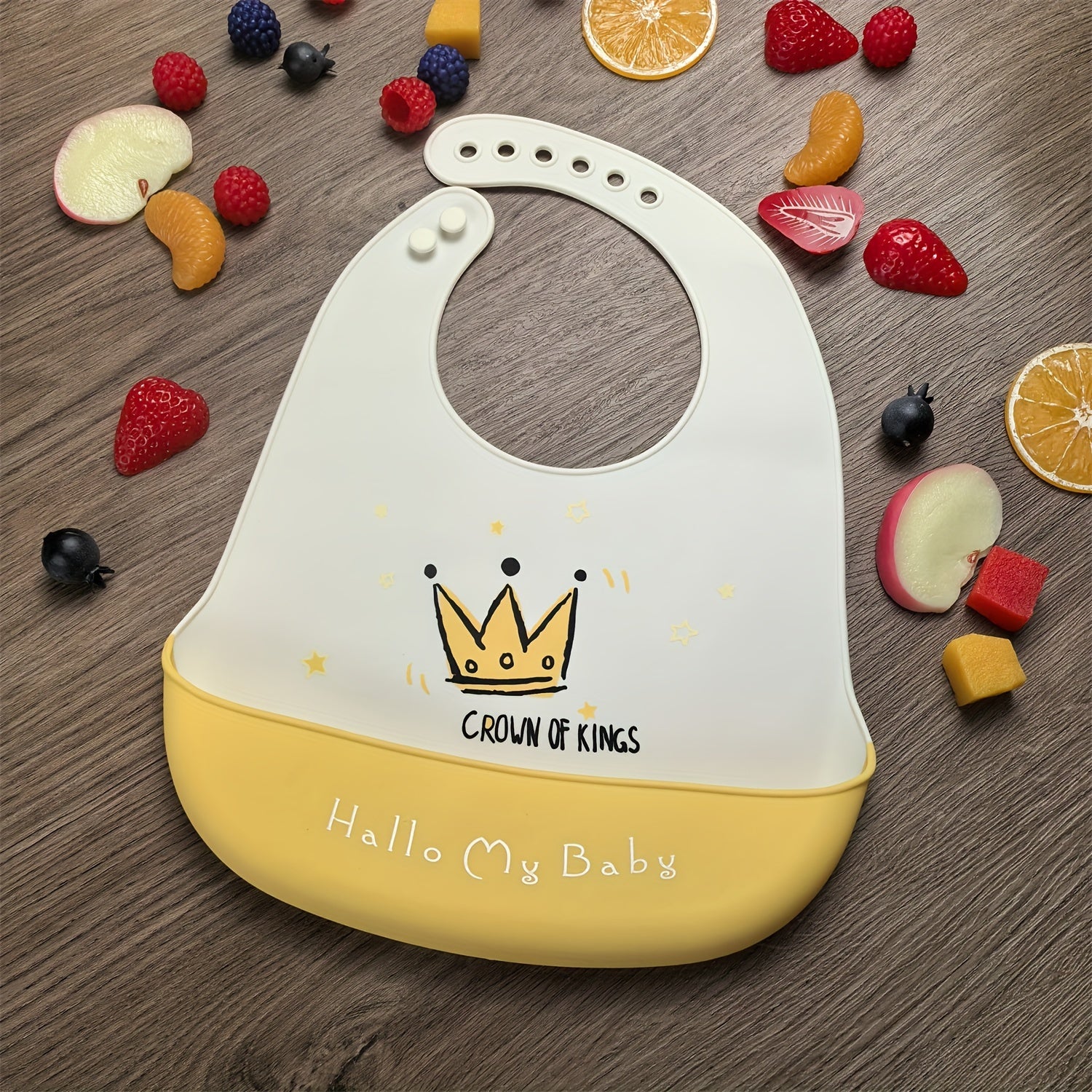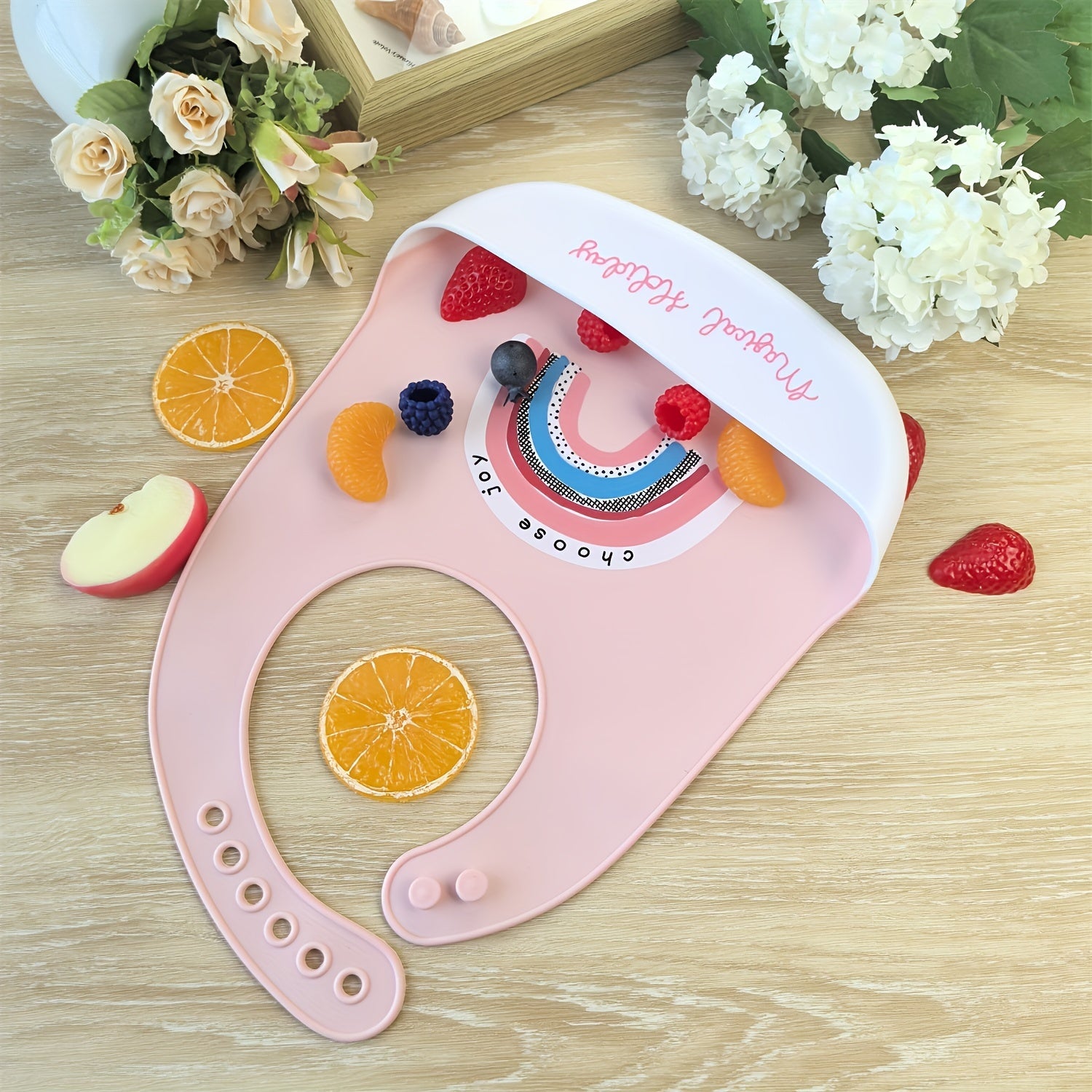 Silicone Kids Bib Pink Waterproof with Rainbow Crown Space Design for Boys Girls