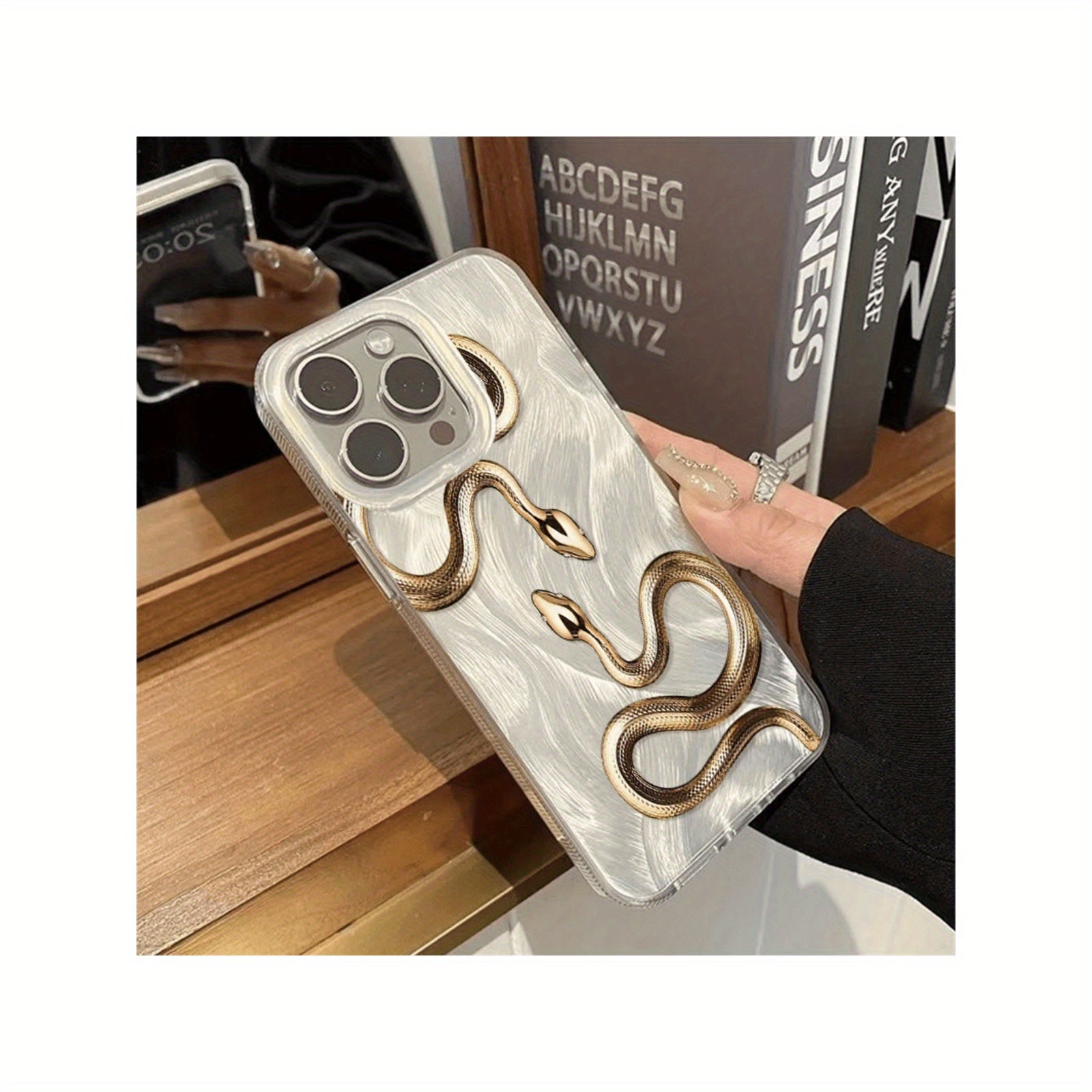 Golden Snake Feather TPU Phone Case for iPhone 11-16 Pro Max with Lens Protection