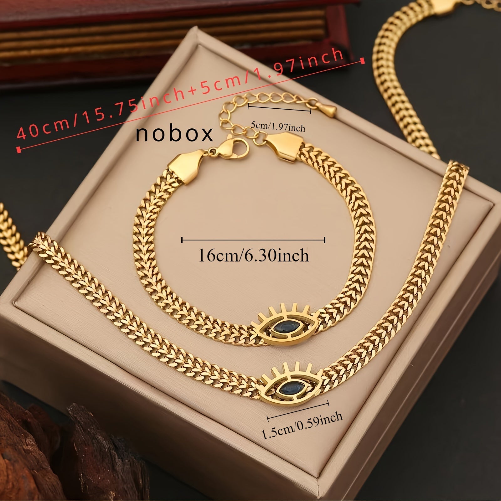 Golden Stainless Steel Hollow Eye Necklace and Bracelet Set for Women