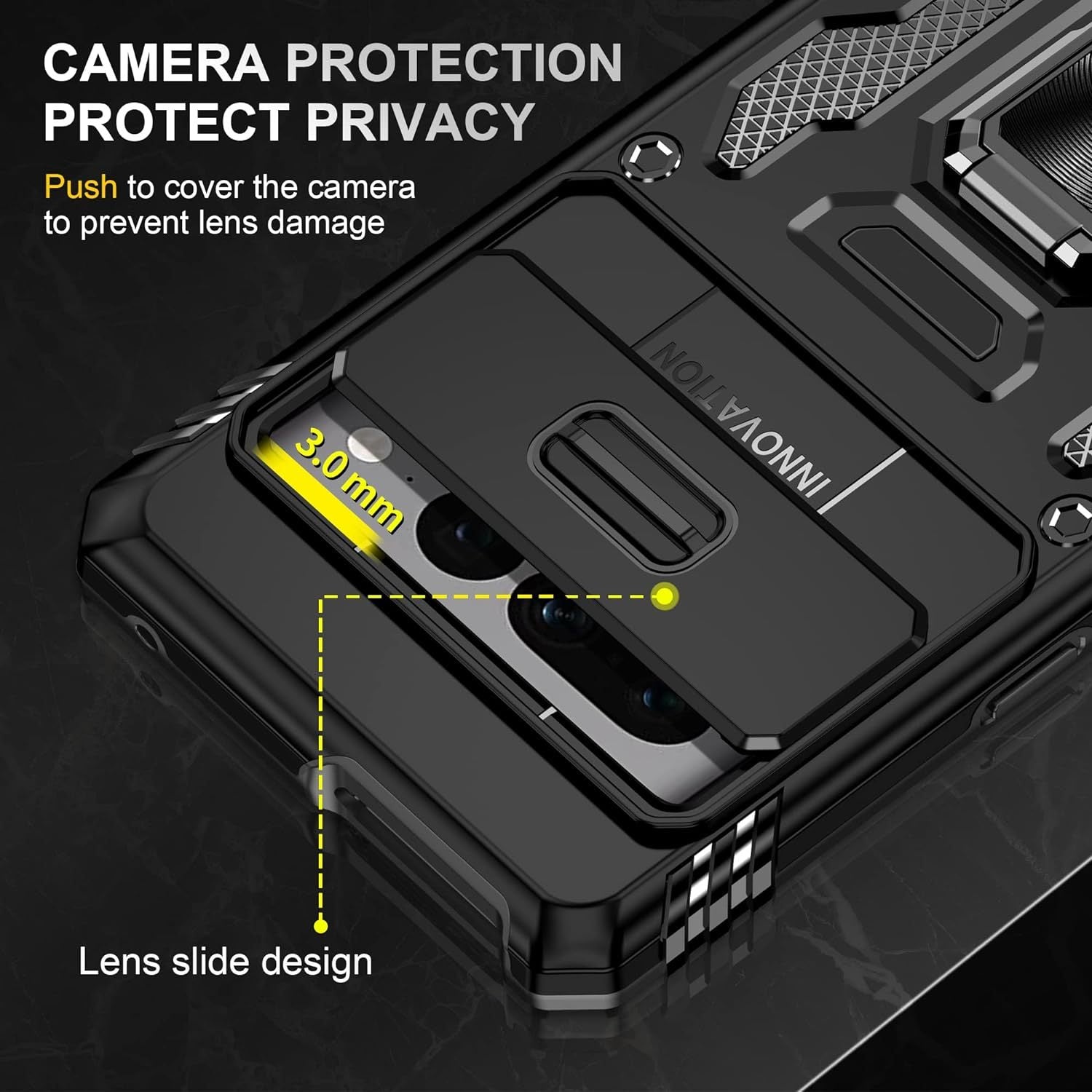 Black Shockproof Phone Case for Google Pixel 7 8 Pro 7A 7 with Slide Camera Cover and Magnetic Kickstand