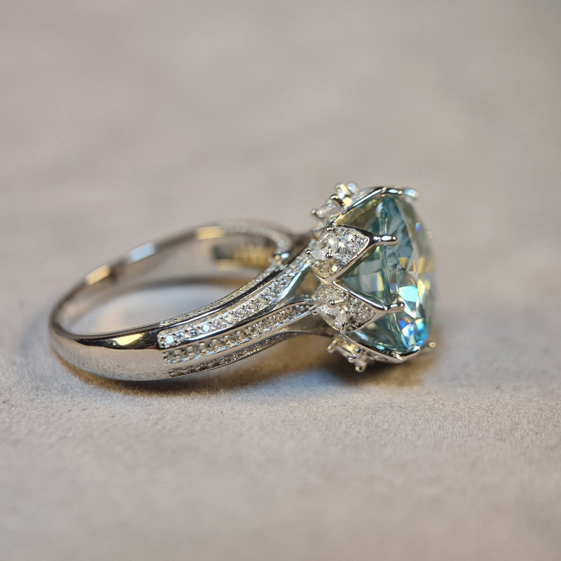 Green Moissanite Engagement Ring 10 Carat Sterling Silver Gold Plated Wedding Jewelry