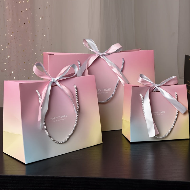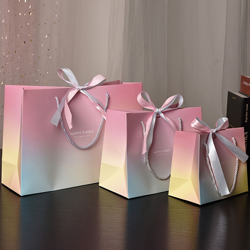 Gradient Color Paper Gift Bag with Ribbon Bow for Cosmetics and Party Favors