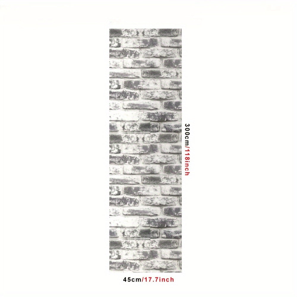 Gray Brick Wallpaper Roll Self-Adhesive Vinyl Contact Paper for Kitchen Bedroom Countertops