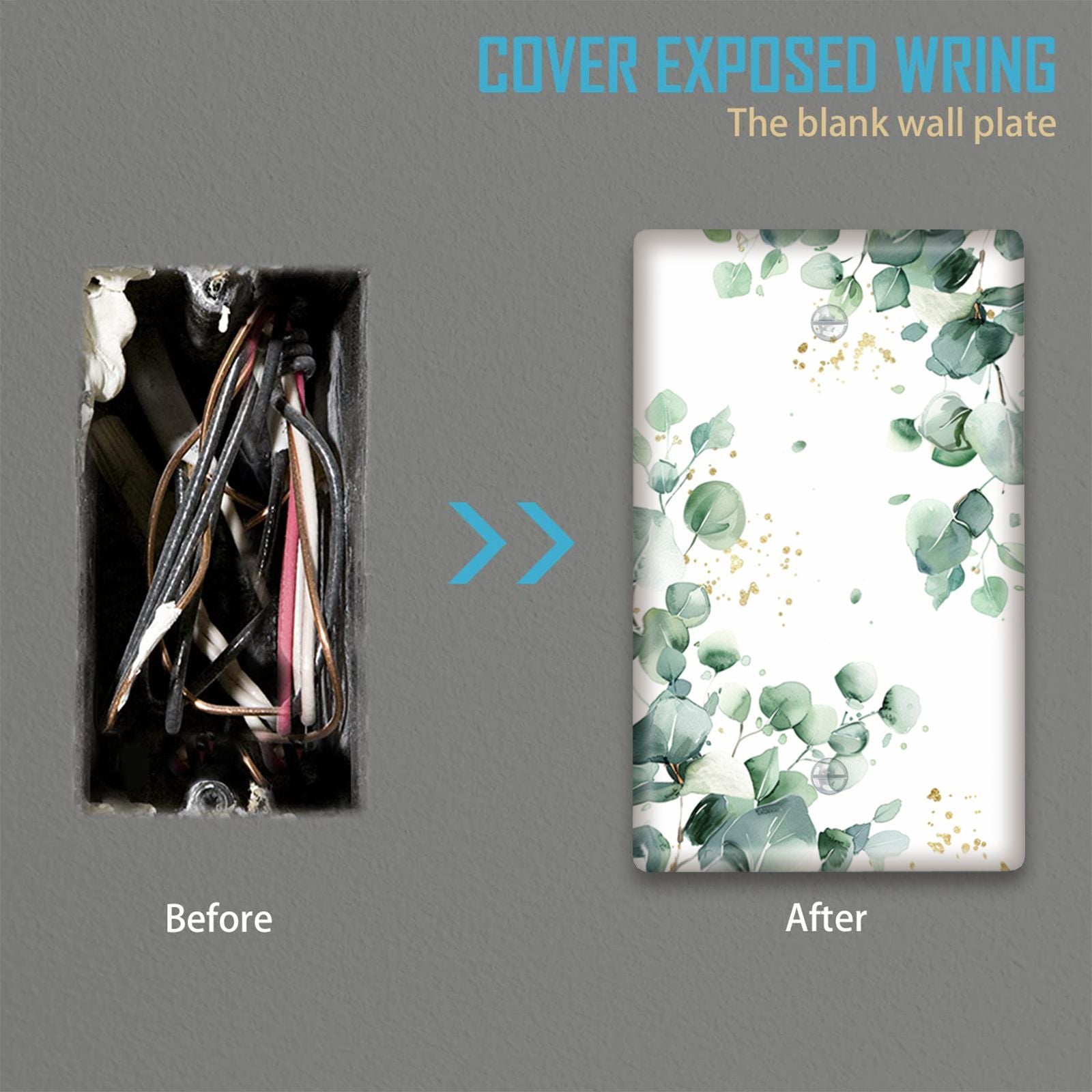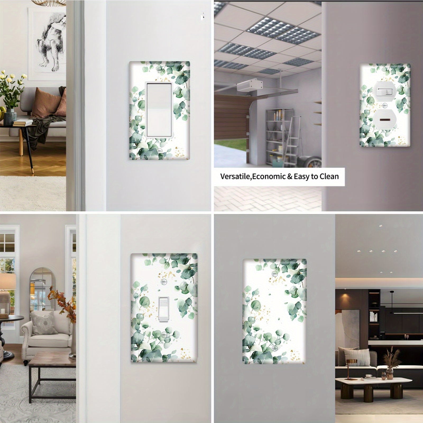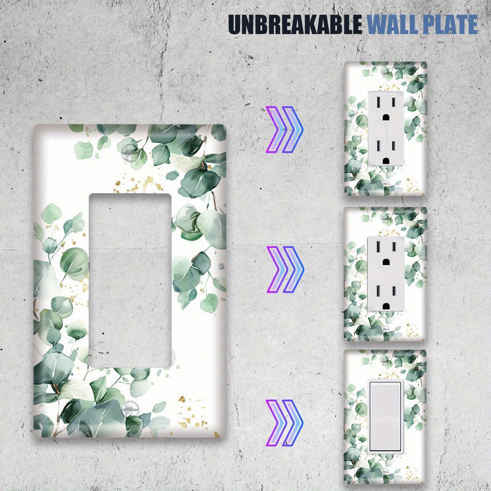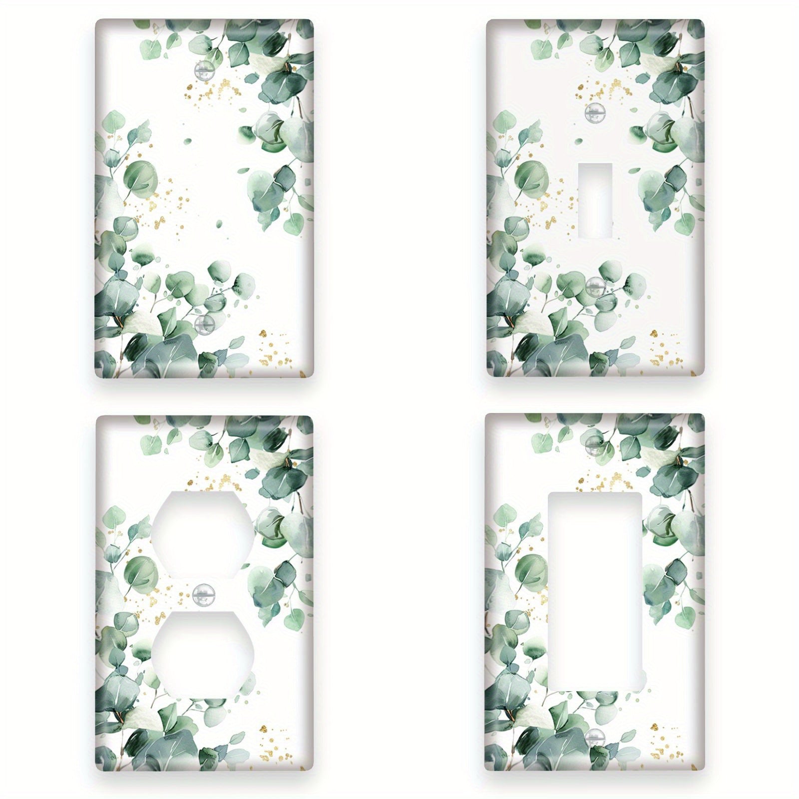Green Leaves Pattern Light Switch Cover Double Hole Decorative Unbreakable White and Gold