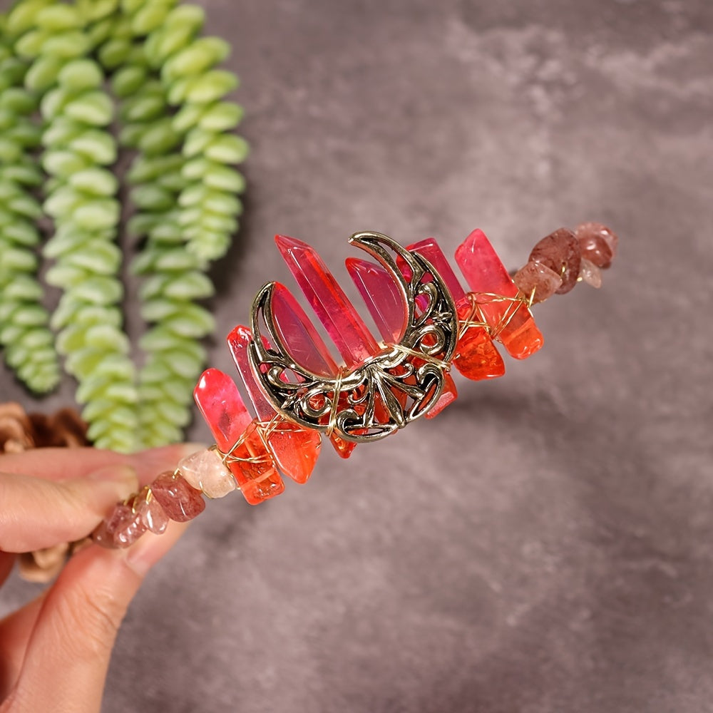 Women's Hair Accessory Headband with Natural Crystal and Moon Tiara Design