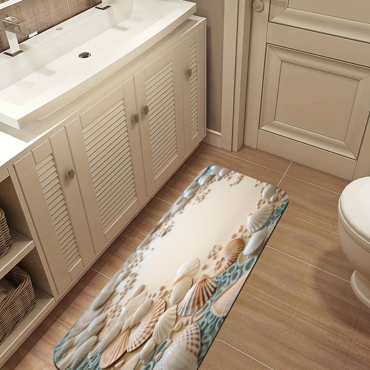 Ocean Coastal Bathroom Rug Non-Slip Floor Mat Washable Small Shower Carpet Nautical Beach Style
