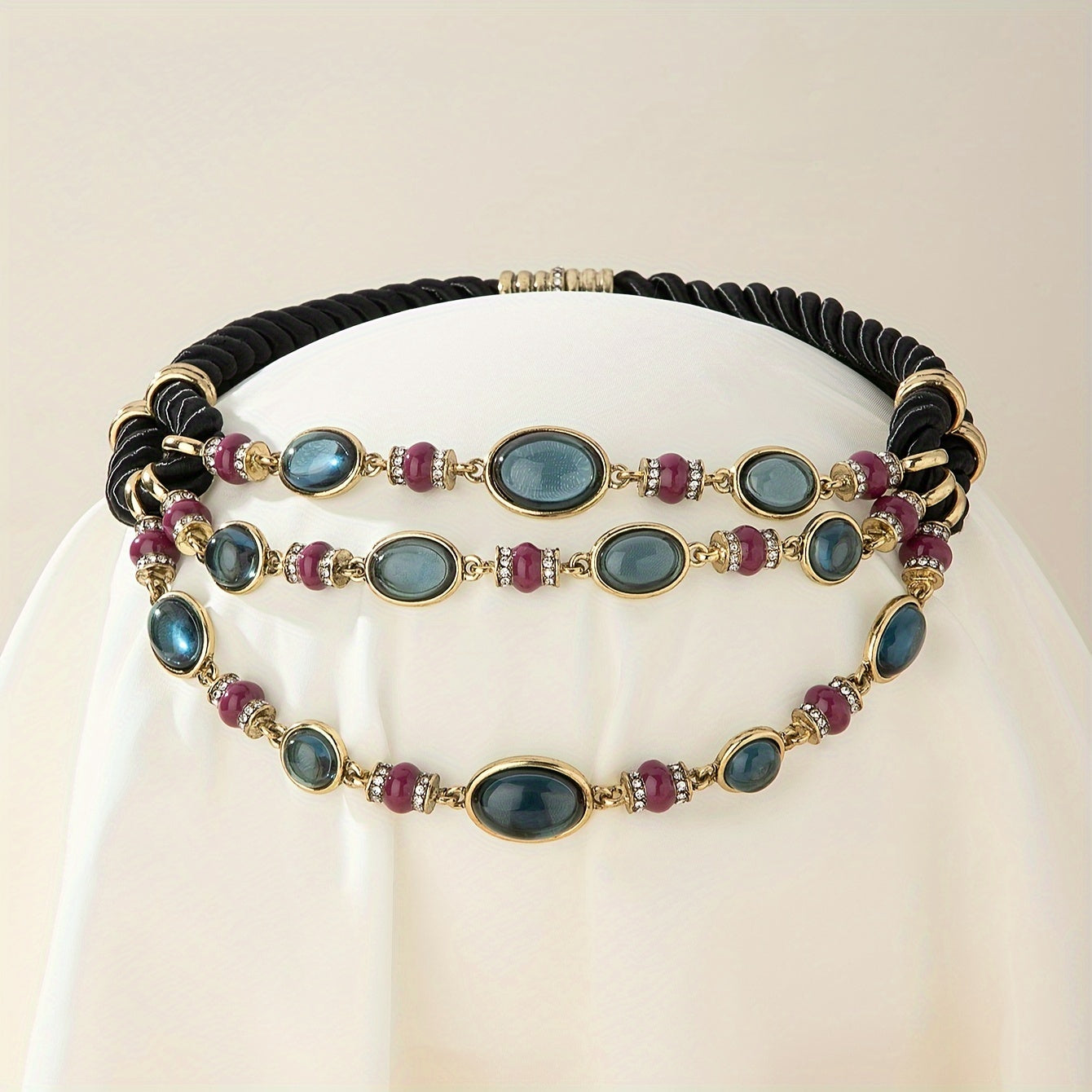 Elegant Purple Glass Mosaic and Copper Alloy Necklace for Women Vintage Style Jewelry