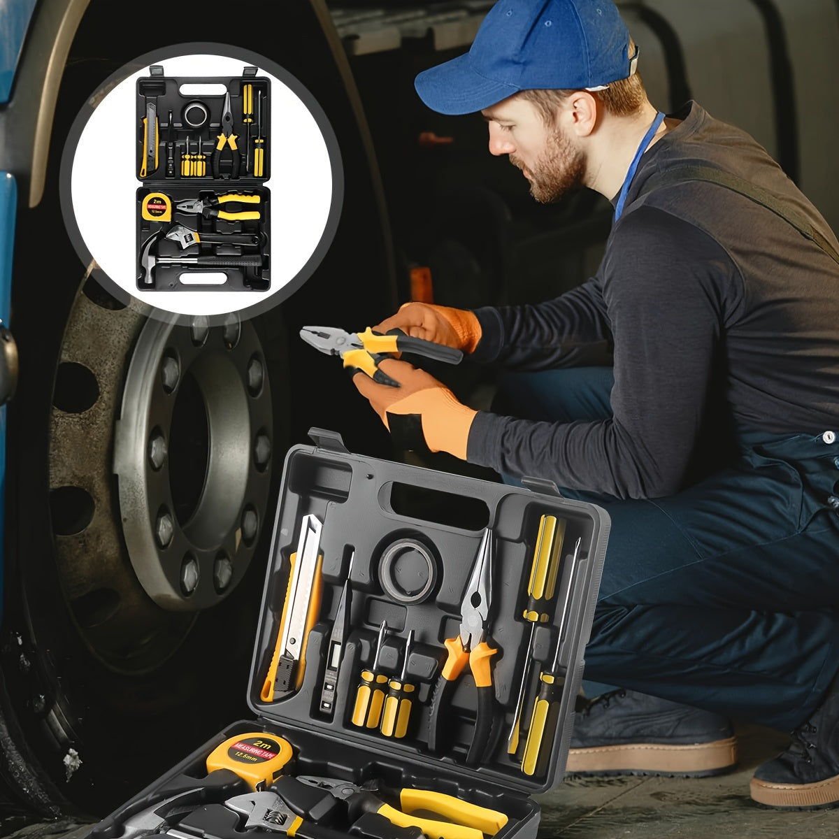 Handheld Household Toolbox with Plastic Case for Car and Home Repair