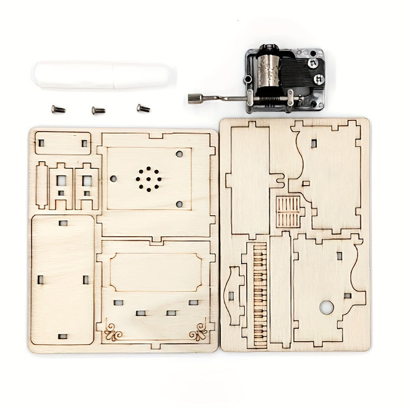 Wooden Music Box Handmade DIY Small Piano Music Combination Light Yellow