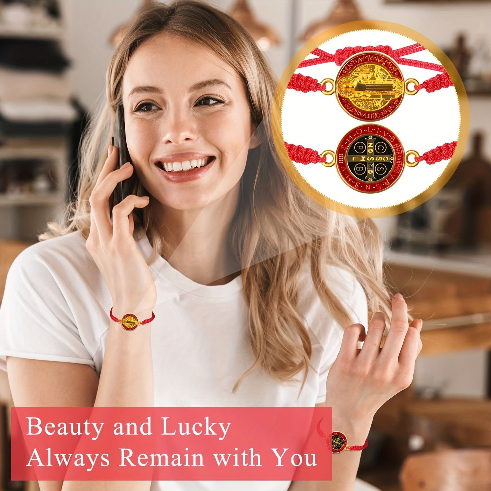 Red Knot String Bracelet with San Benito Charm Adjustable Good Luck Jewelry for Women and Men
