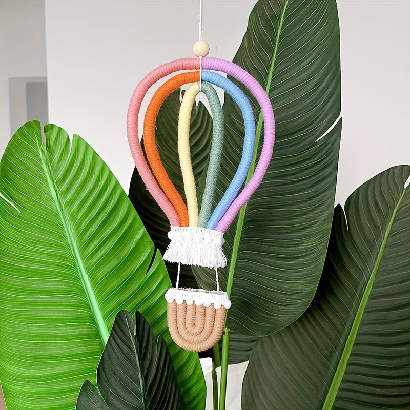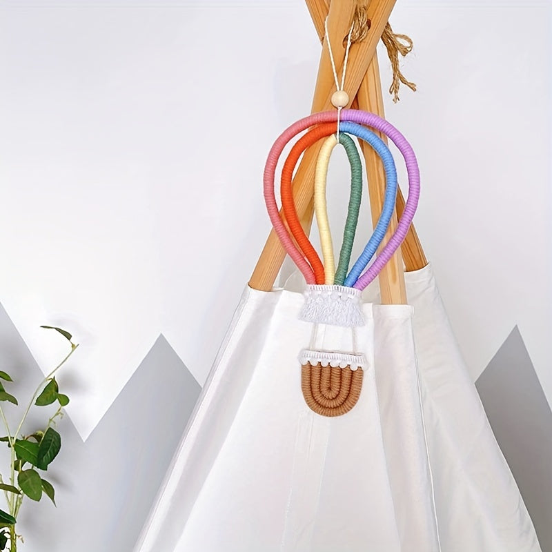 Nordic Style Hanging Wall Decor Ornament Woven Rainbow Hot Air Balloon for Wall Art