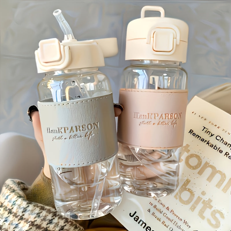 500ml BPA-Free Plastic Water Bottle with Straw Flip Lid Leakproof for Outdoor Sports