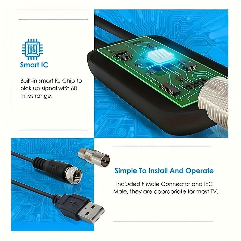 Indoor HD TV Antenna 360° Smart Signal Receiver Supports 4K 1080P Compatible with Old and Smart TVs