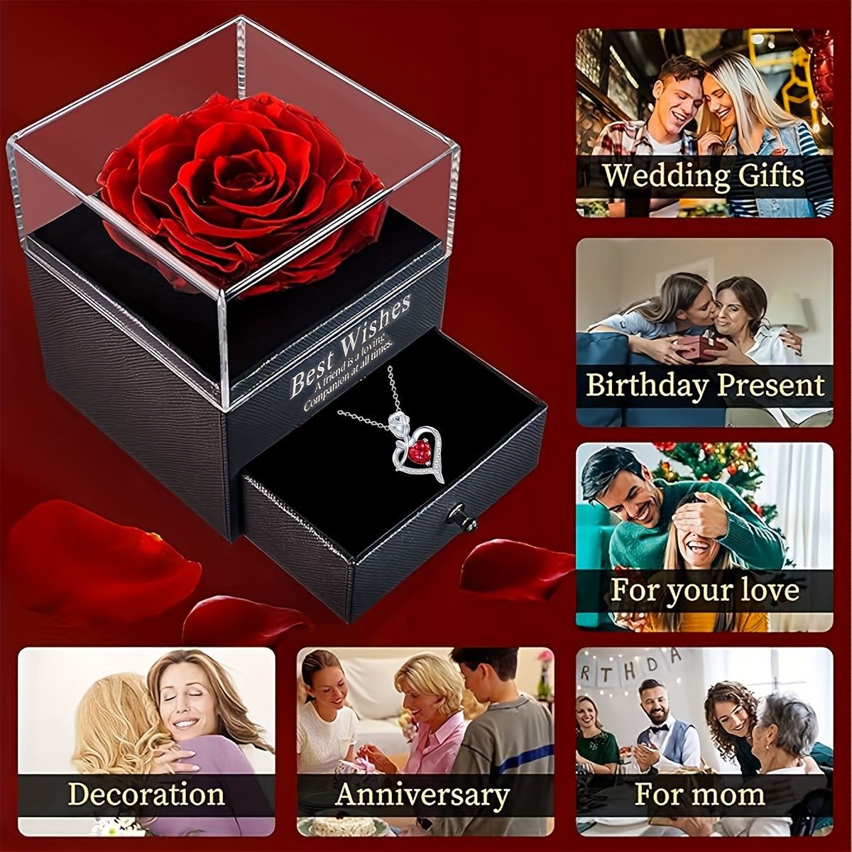 Rose Gold Heart Shaped Pendant Necklace in Gift Box for Women
