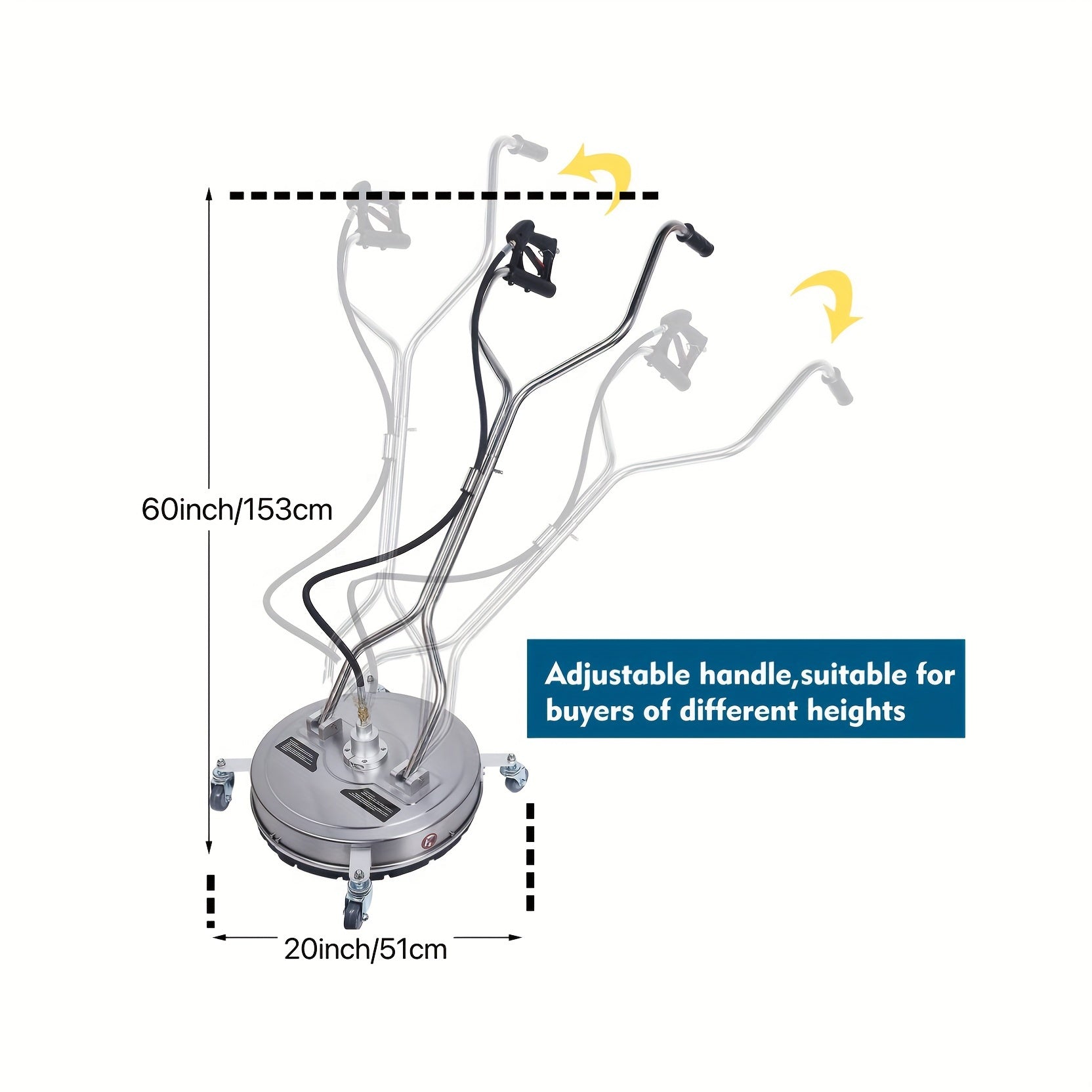 High-Pressure Surface Cleaner Stainless Steel 50.8cm for Electric Power Washers Driveways Decks Sidewalks Patios