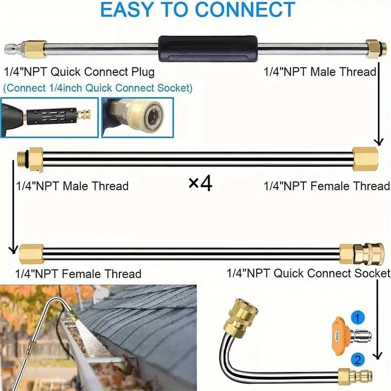 High-Pressure Washer Hose Kit 7 Pieces with Nozzles and Stainless Steel Extensions