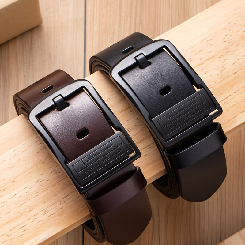 Men's Vintage Faux Leather Belt with Pin Buckle Black Large Size