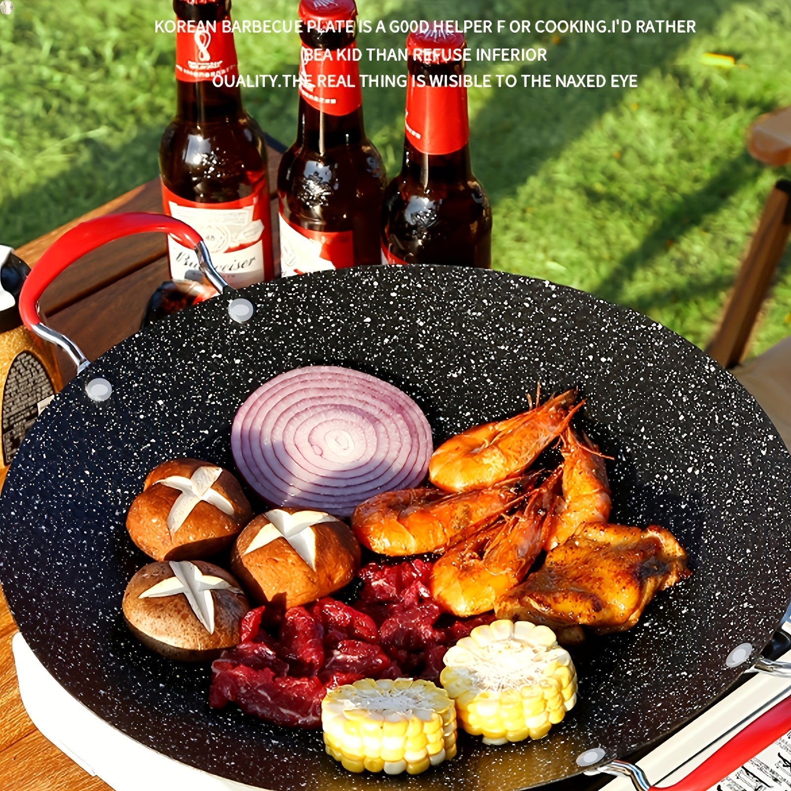 Korean BBQ Grill Pan Non-Stick PFOA-Free Circular Griddle with Heat-Resistant Handle