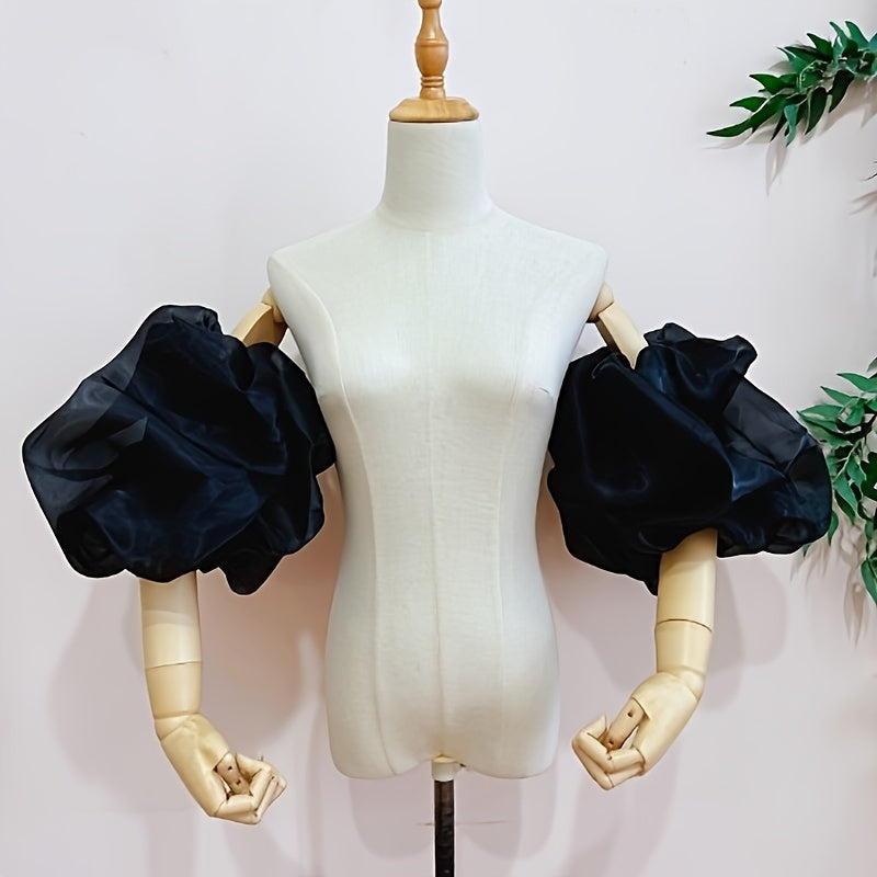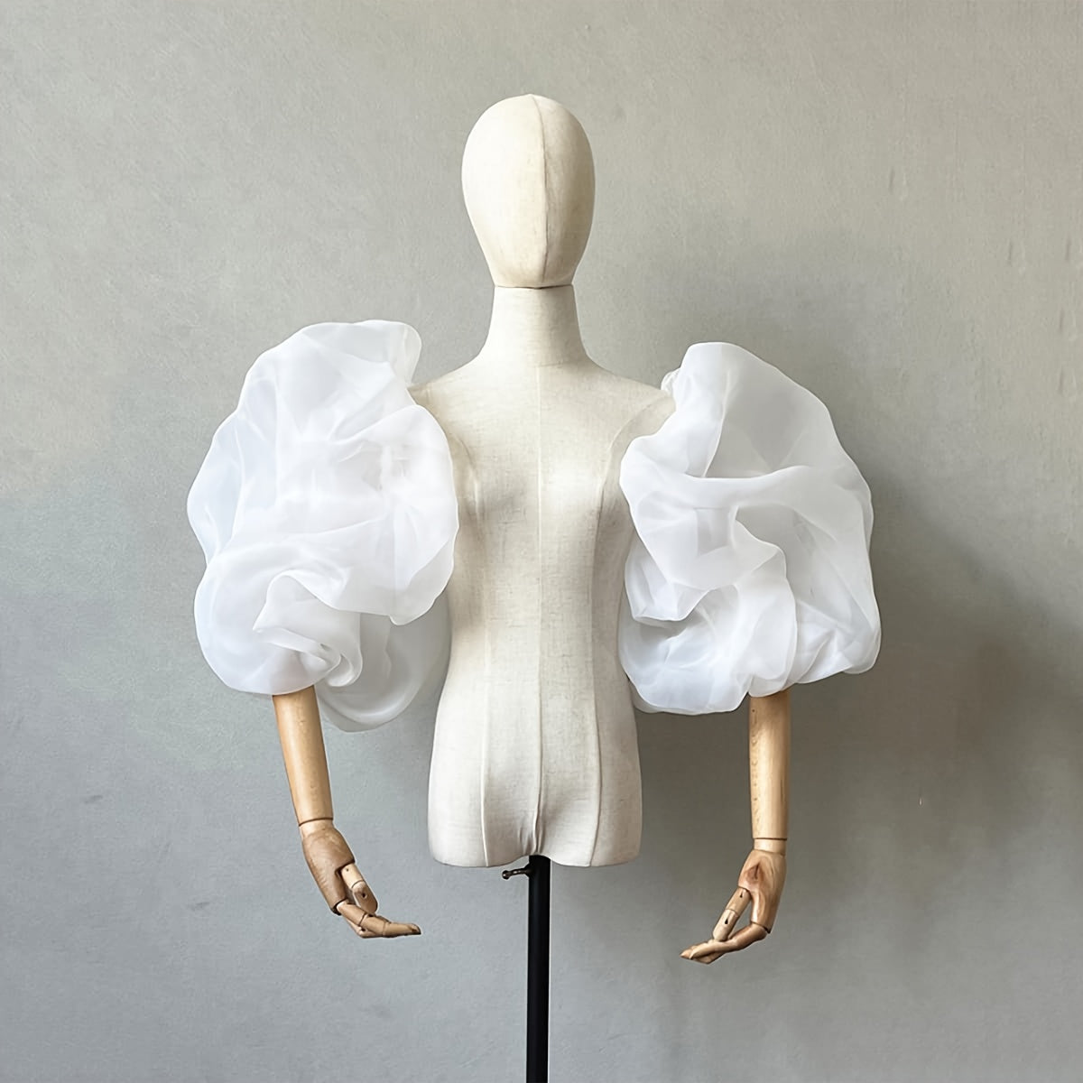 Women's Wedding Dress with Oversized Bubble Sleeves and Cloud Accents