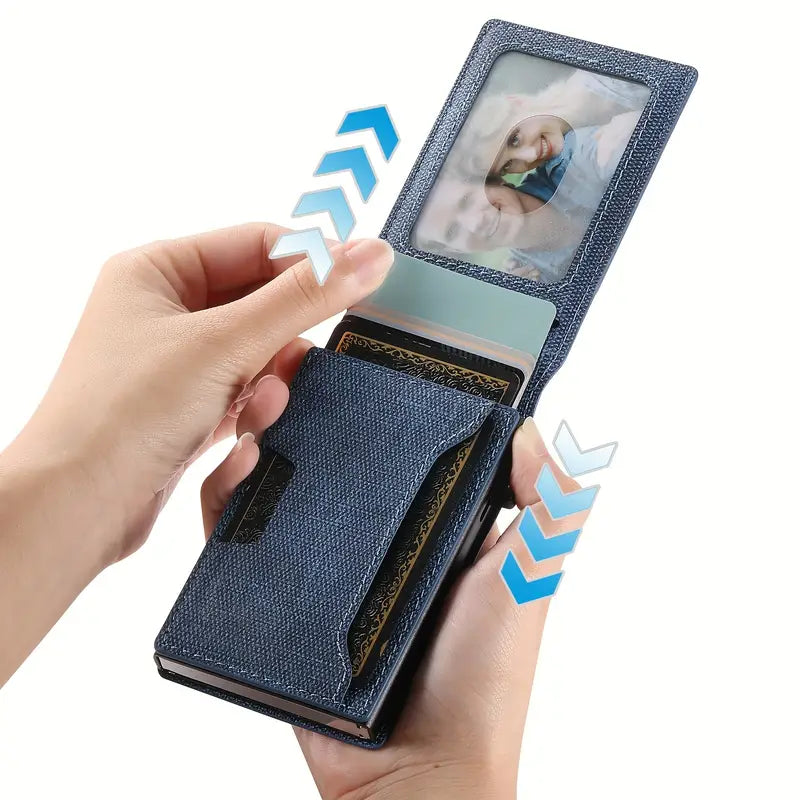 Men Women Bifold Wallet Leather Card Holder with Photo Slot in Black Brown Blue