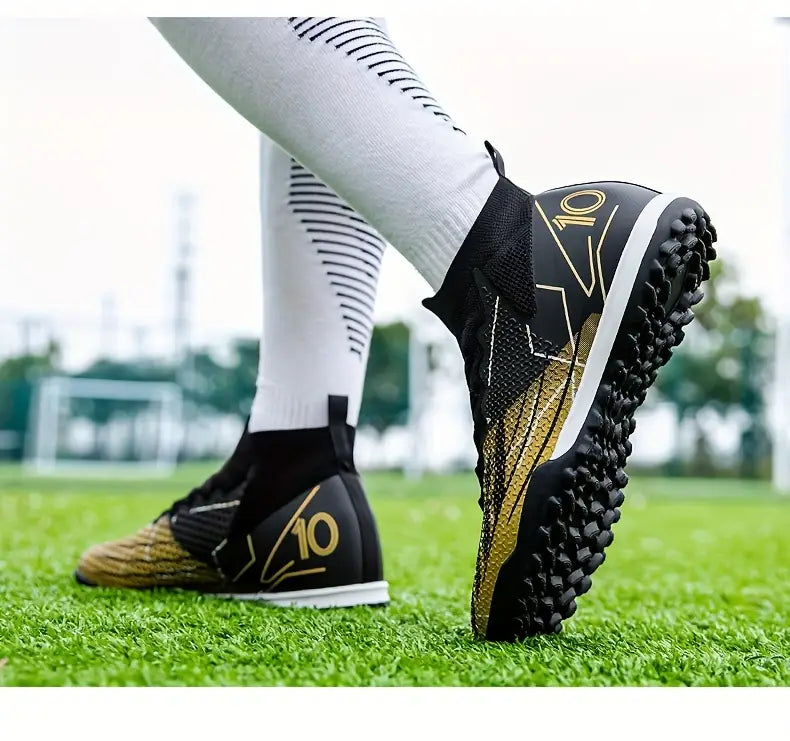 High Top Soccer Shoes Non-Slip Turf Grips Indoor Outdoor Training