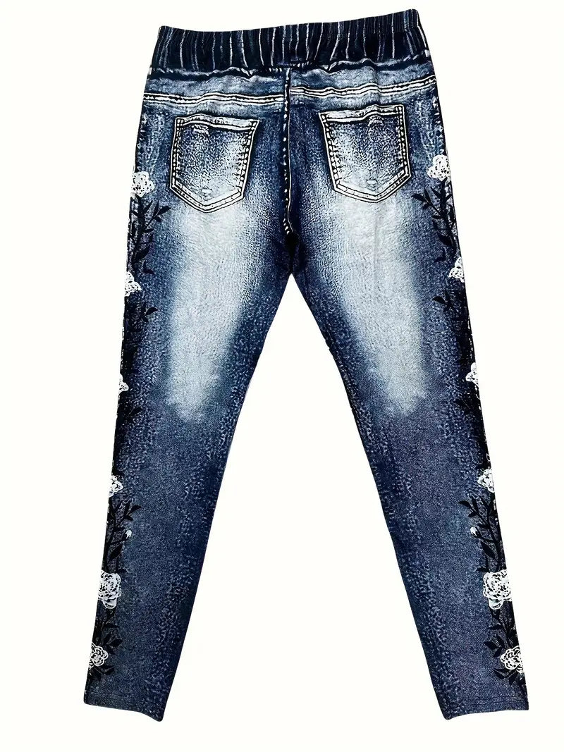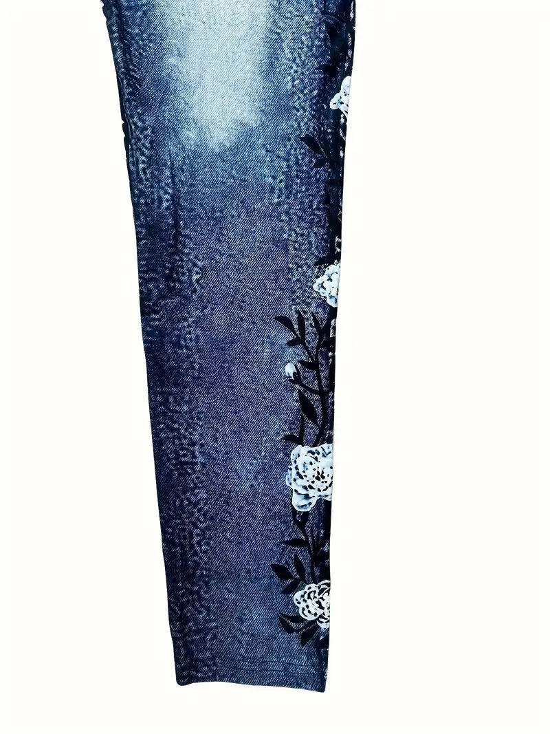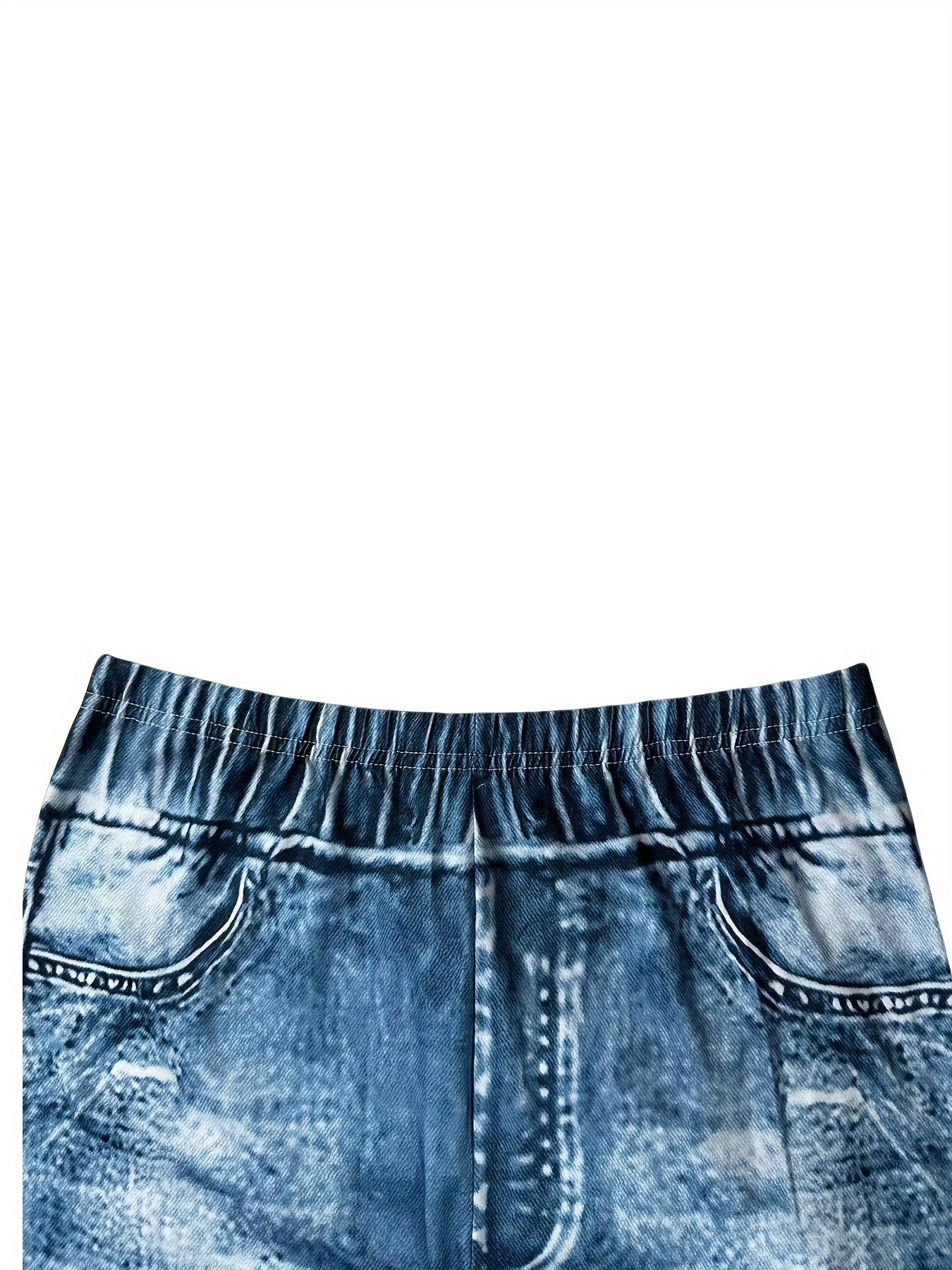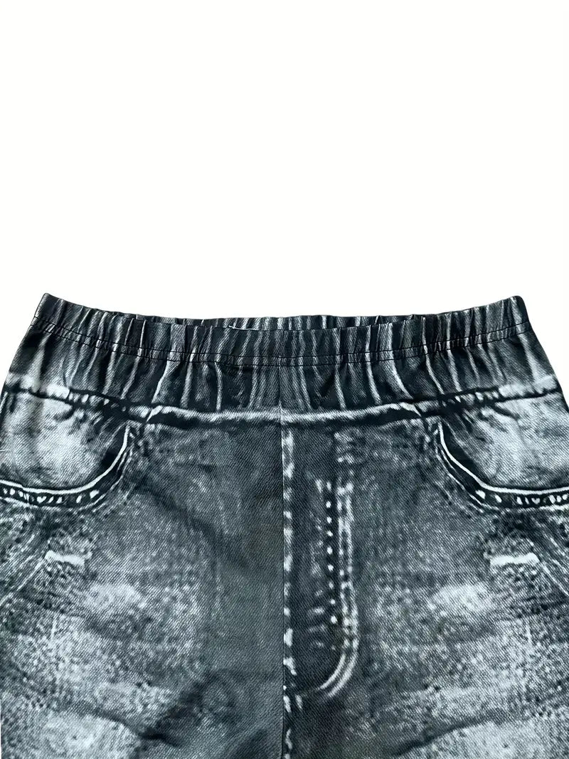 High Waist Faux Denim Print Leggings for Daily Wear Women Long Stretch Skinny Tights