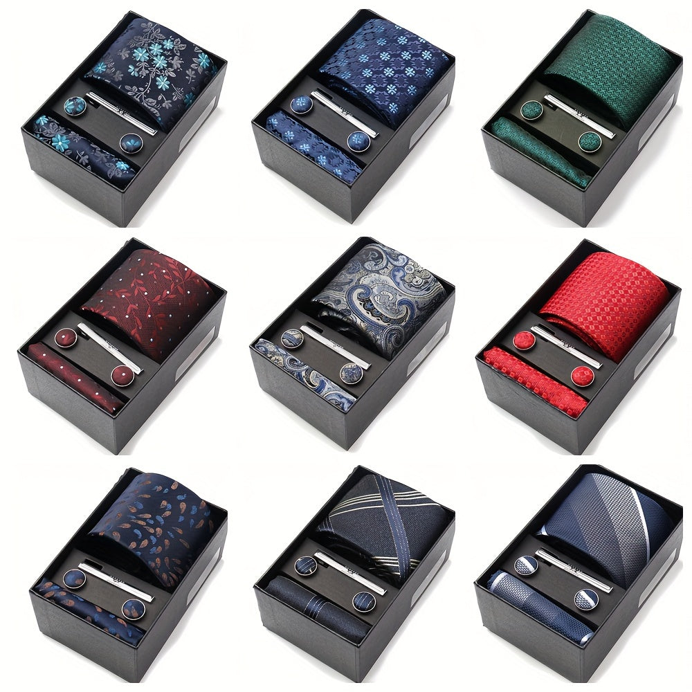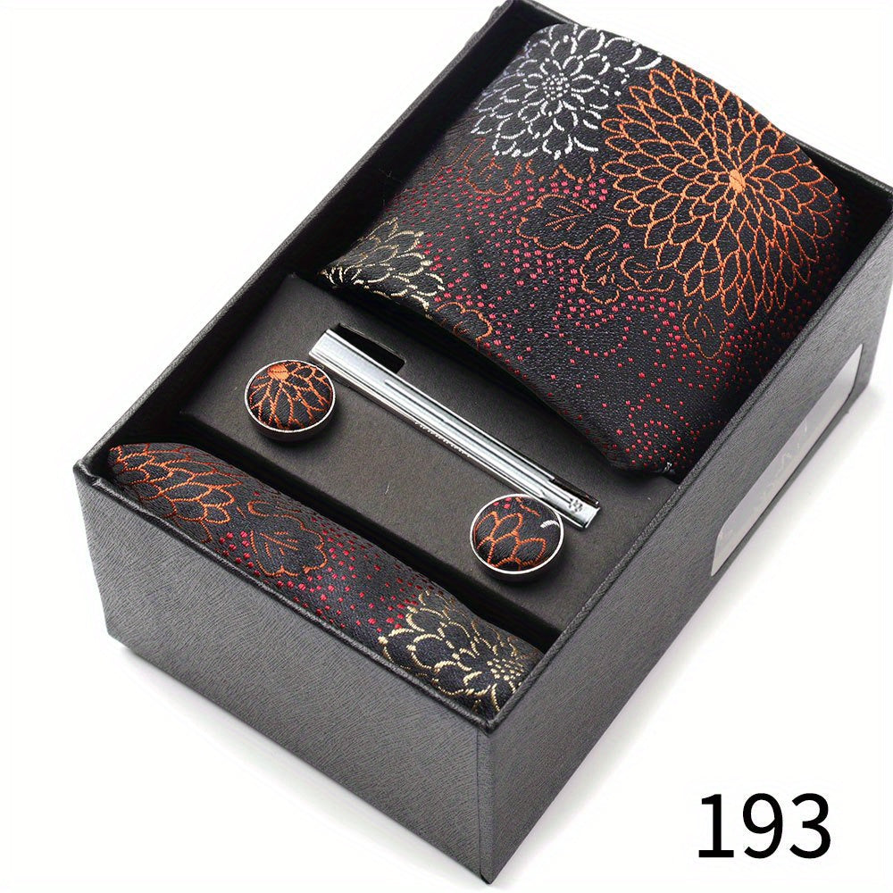 Men's Gift Set with Tie, Pocket Square, Tie Clip and Cufflinks for Weddings