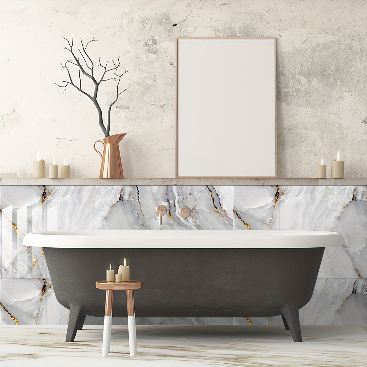 Waterproof Marble Pattern PVC Floor Stickers for Kitchen Decor, 10 Pieces