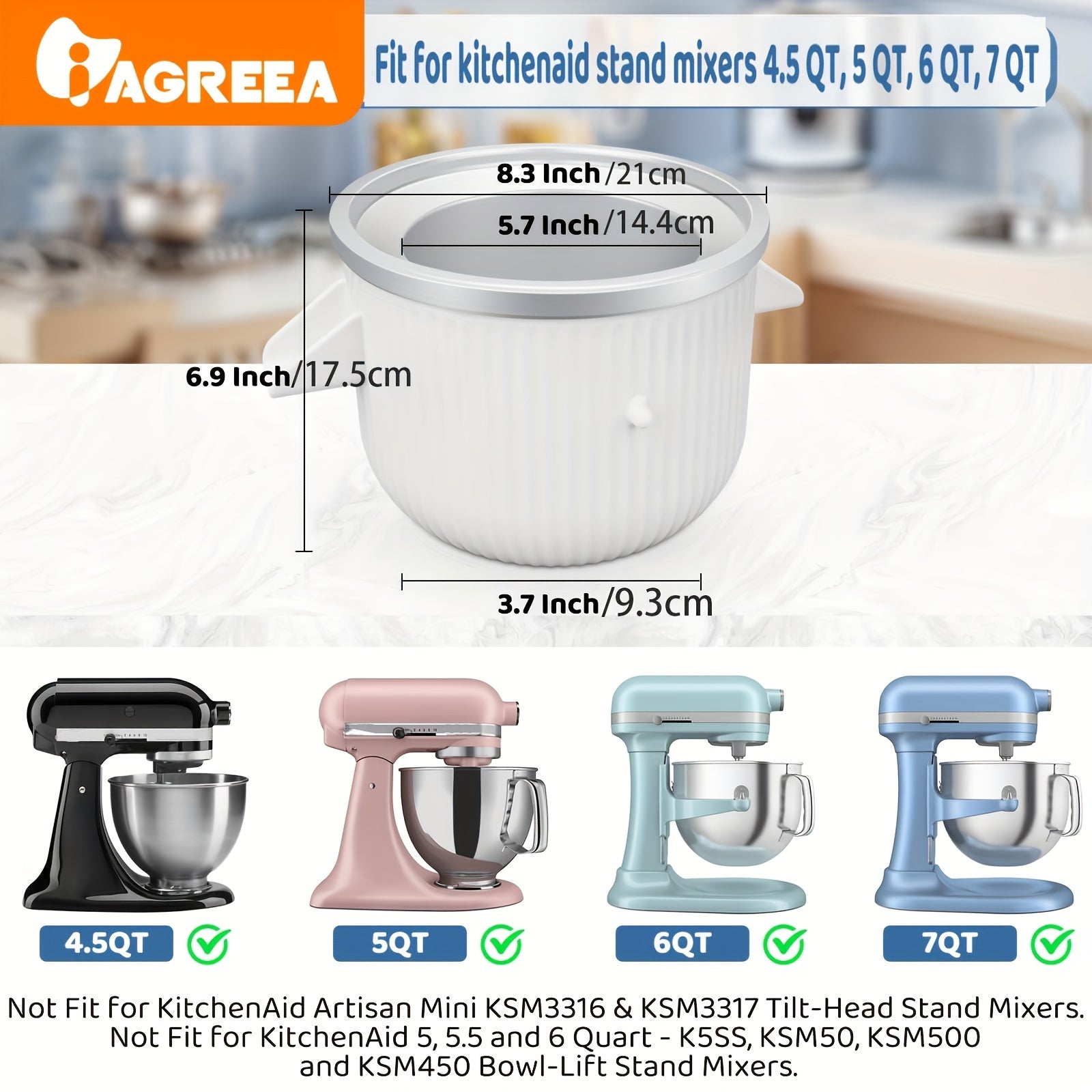 Ice Cream Maker Attachments for Stand Mixer Frozen Yogurt Sorbet 4.5QT-6QT